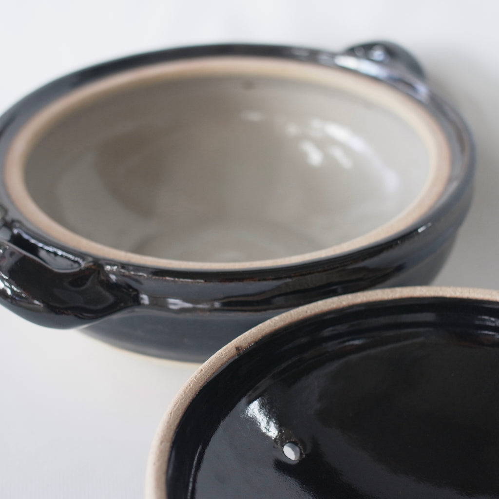 手挽きの土鍋は重たいという意見が多く、もう少し軽いものが欲しいという要望から誕生したのがこちらの土鍋。生地を薄くし、一定角度で底上げをすることでひび割れを防ぎ、強度を保つように工夫された構造になっています。土鍋の中に出汁や食材を入れるとさらに重量が増すので、土鍋自体が薄くて軽いのは、扱いやすくとても実用的です。家族や友人と囲む時は八〜九寸サイズで、一人前の鍋焼きうどんや湯豆腐を作るときは七寸サイズがおすすめです。