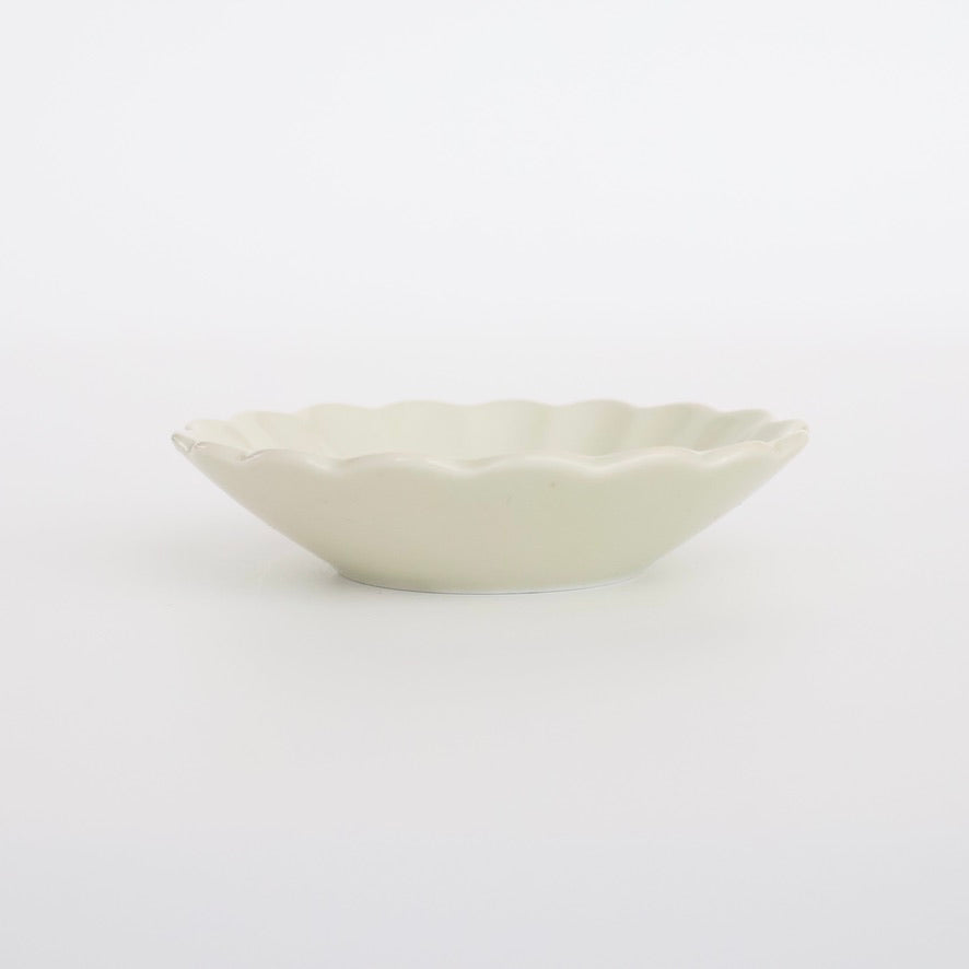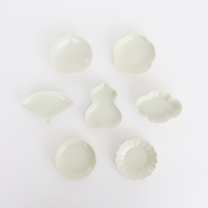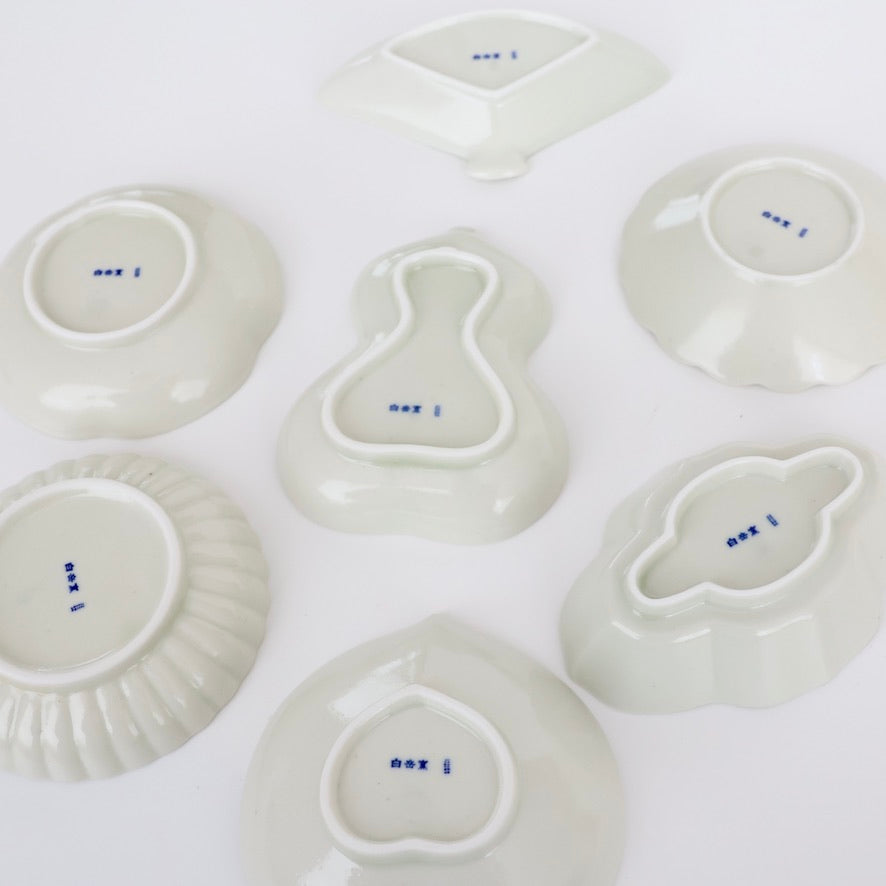 いろいろな形が愉しい豆皿。お総菜、お漬物、薬味入れ、さらにはアクセサリー入れまで(!)・・・小さいからこそ、使い方のバリエーションもいろいろ広がる。印判シリーズもいいけど、土灰の釉薬が、シンプルな中にもやさしい雰囲気を醸し出すこのシリーズもまた、味わい深さがあります。あたたかみのある無地だから、中身がよりいっそう引き立つ。だからこそ、ちょっと遊び心をくすぐるお皿です。