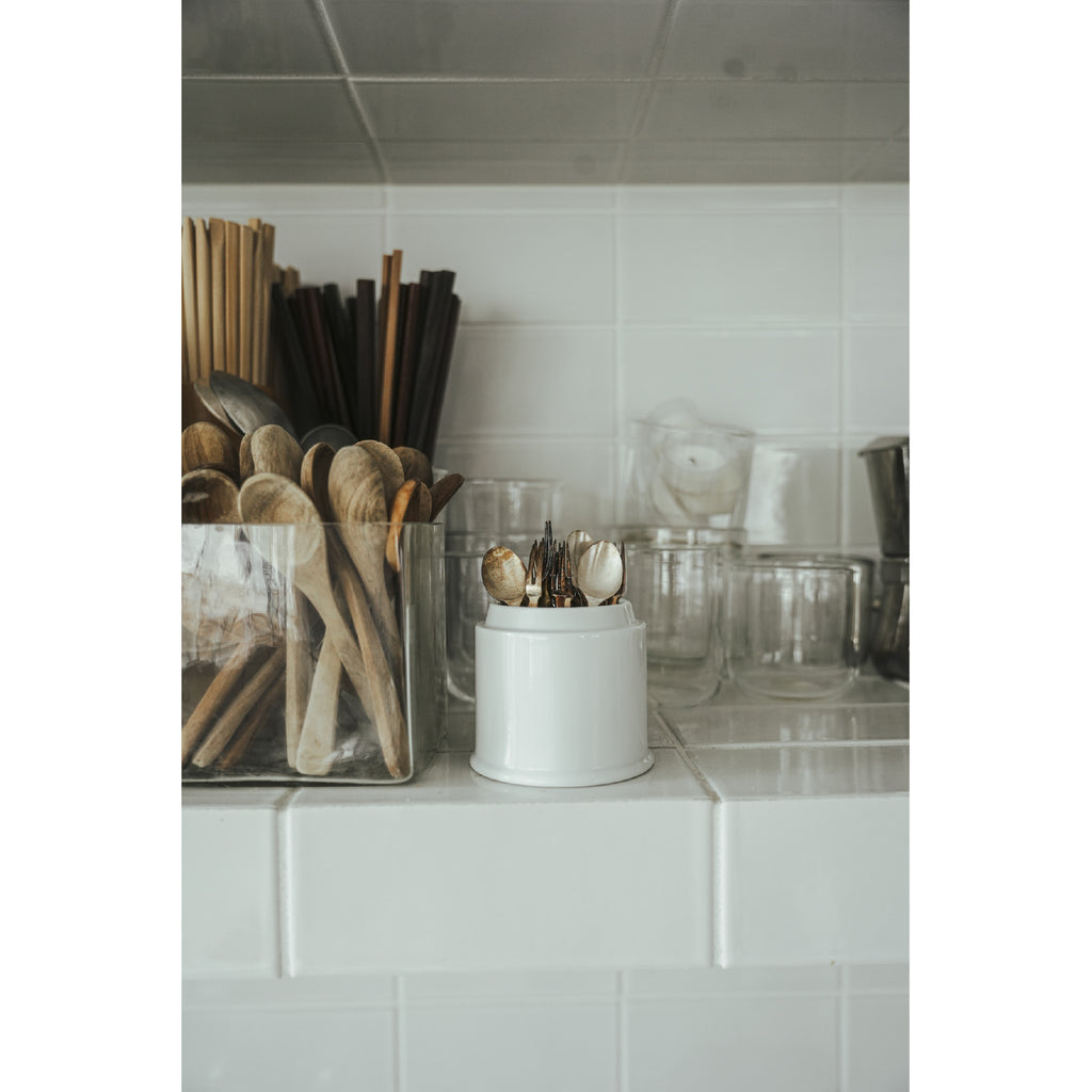 薬味や漬物を食卓に並べ、あまりは蓋をすればそのまま冷蔵庫で保管できます。蓋がなくても短めのカトラリーや爪楊枝入れ、ペン立てとしても使用可能です。