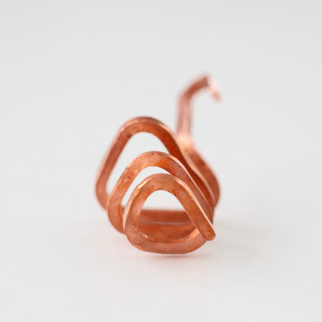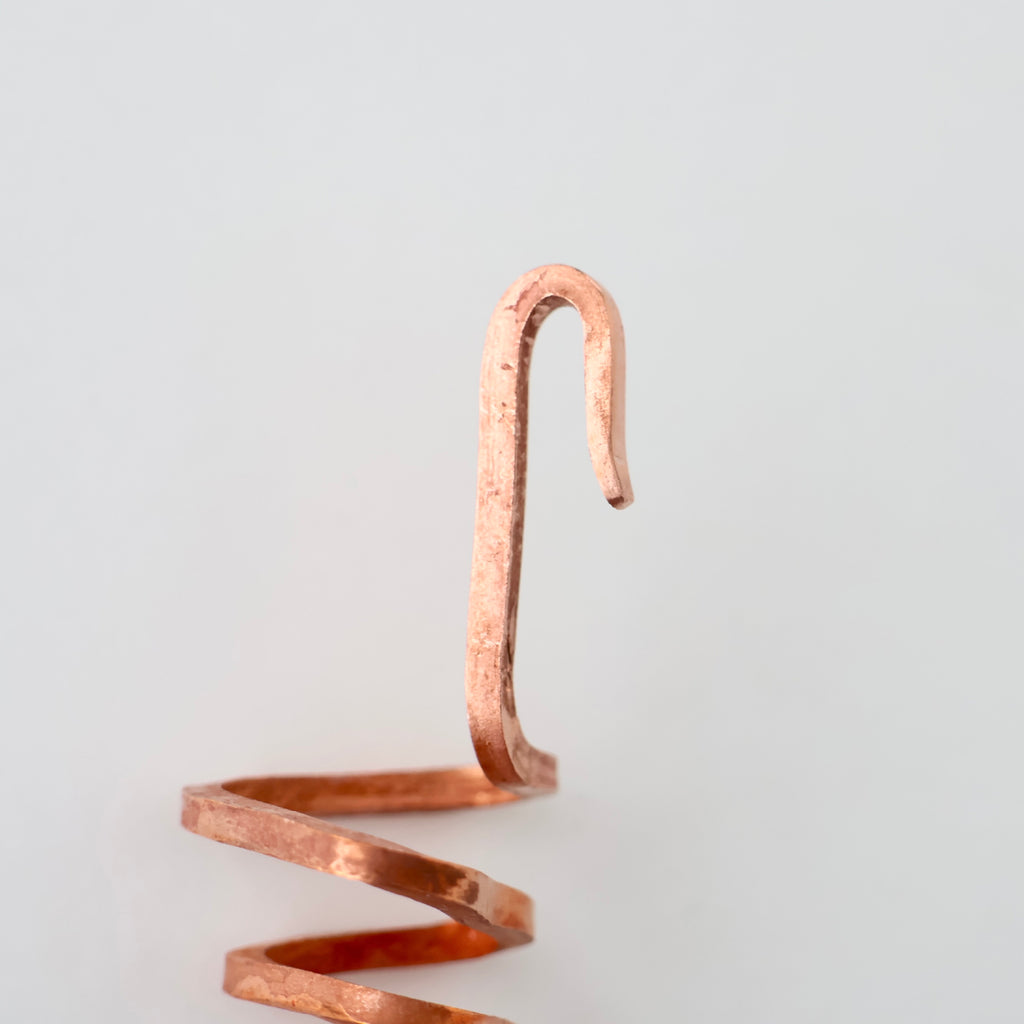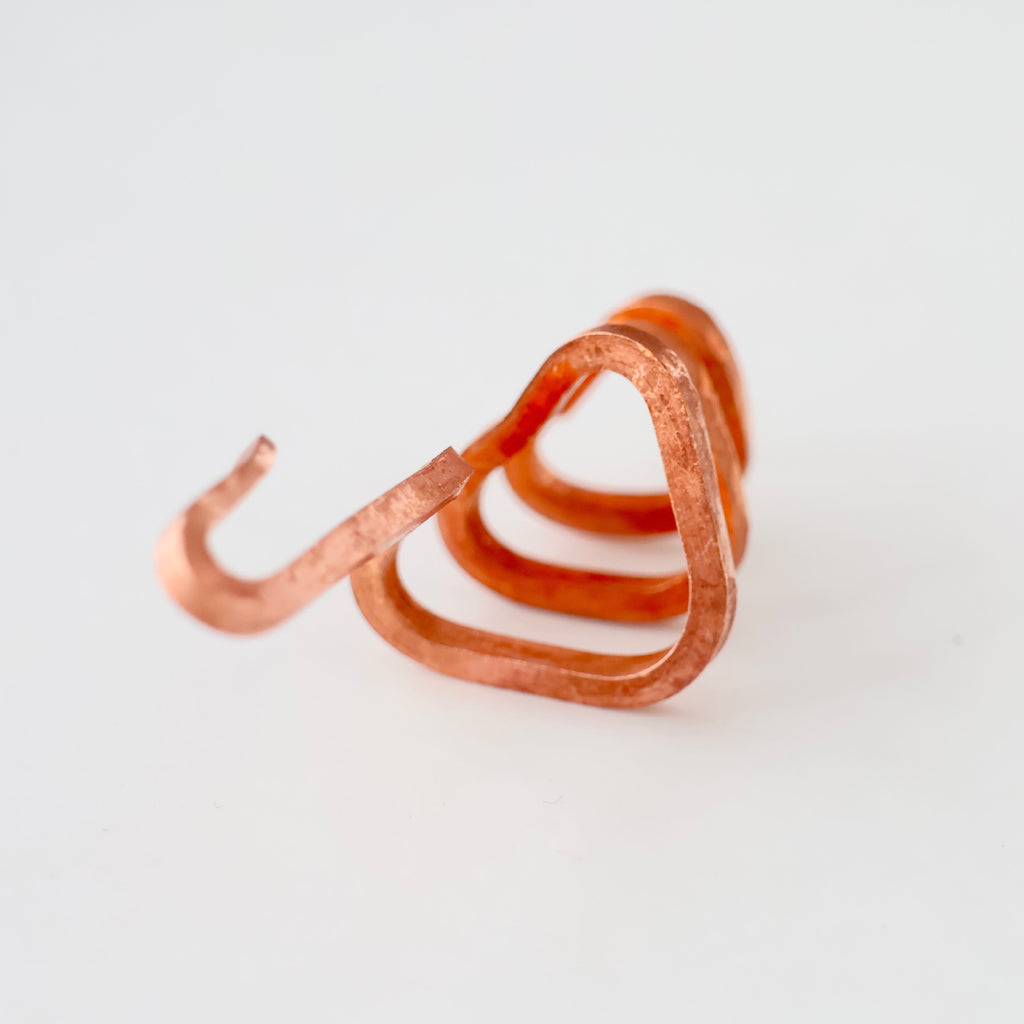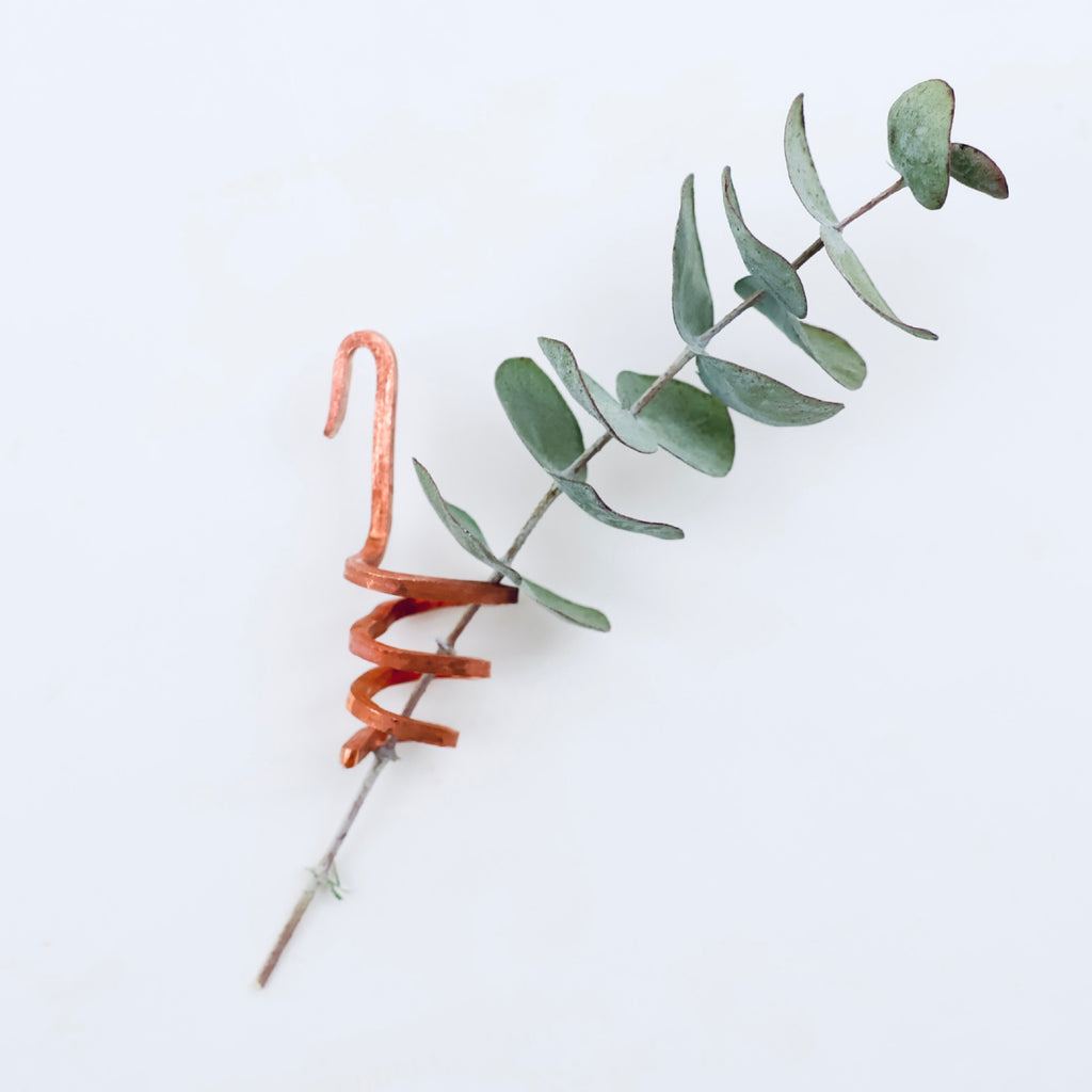 この「花掛け」は十円玉と同じ銅でできています。上野雄次は「花器は銅が古来からの常道」という。調べてみると、銅には殺菌作用があって水をキレイに保つとのこと。バクテリアの繁殖を抑えてお花が少し長生きするみたいです。赤金色の銅の肌は、水を浄化しながら慎ましやかな褐色に転じて、お花の引き立て役に徹していきます。