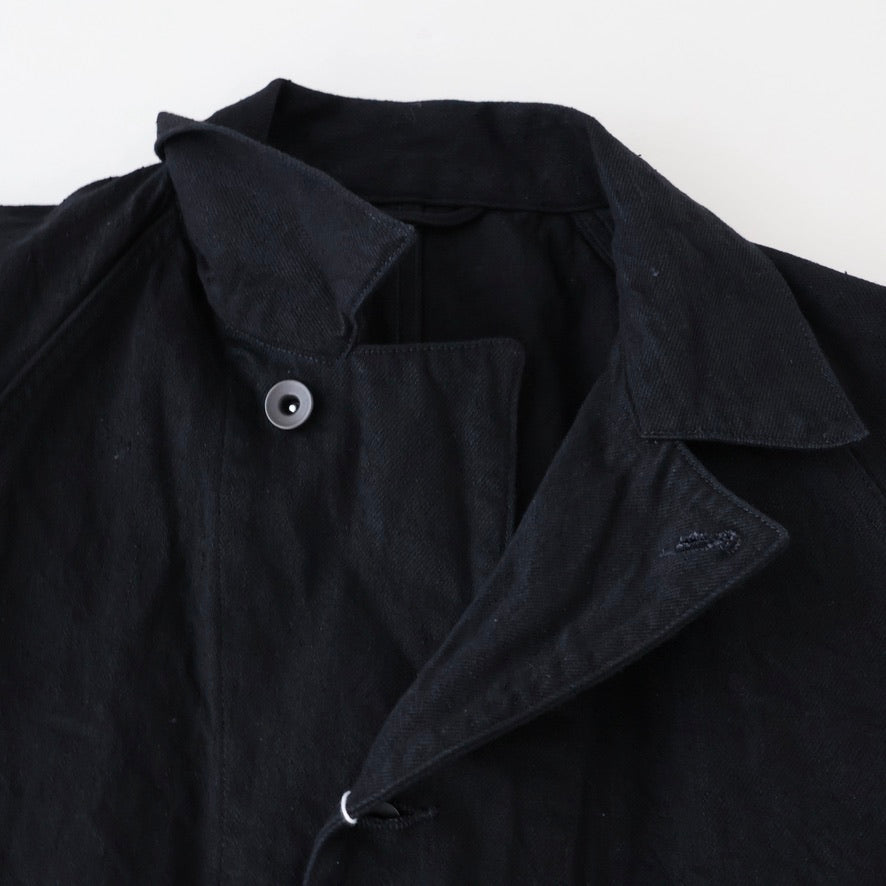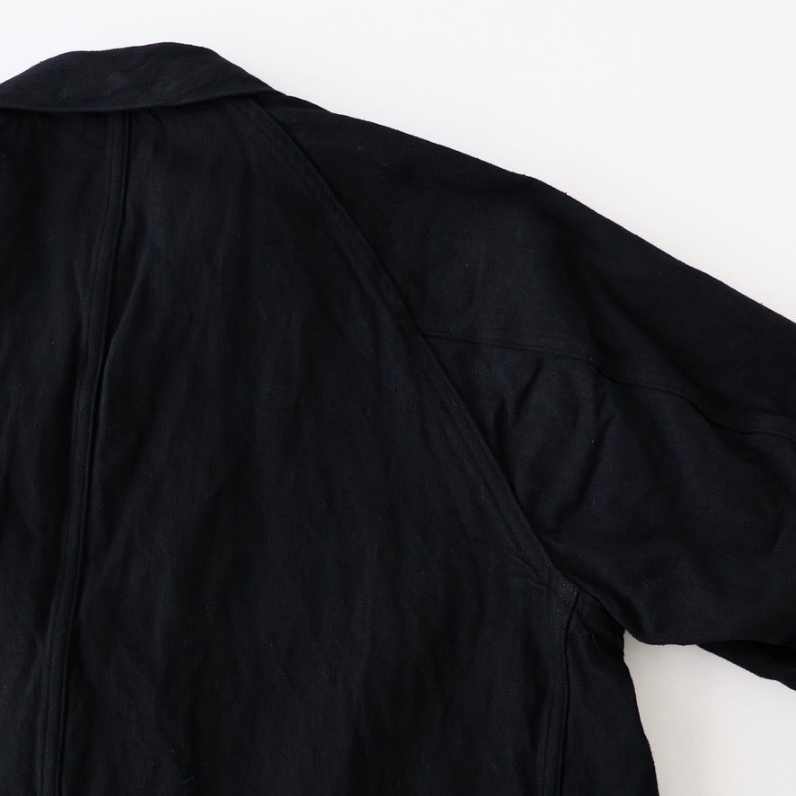 ※生地の特性上、所々に織り節が発生している場合や、洗いを繰り返すことで斜行が発生しやすくなっております。水や汗などで湿った状態、または摩擦により他のものに色移りすることがあります。白物、淡色衣類と合わせての着用の際はご注意ください。洗濯の際は他の物と分けてください。