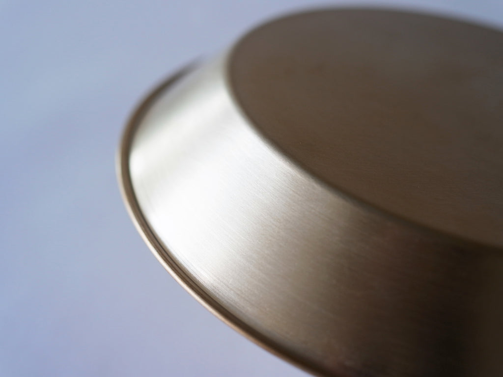 型は浅型の「小」と、縁がしっかり立ち上がった深型「大」の2種類。素材も、特性をそのまま楽しんでいただける真鍮と、経年の変化をより楽しんでいただける銀メッキをご用意。用途に応じてお選びください。