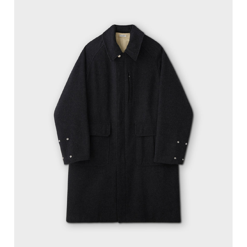 クラシックな1枚袖ラグランコートにアウトドアディテールをミックスしたフィールドコートになります。