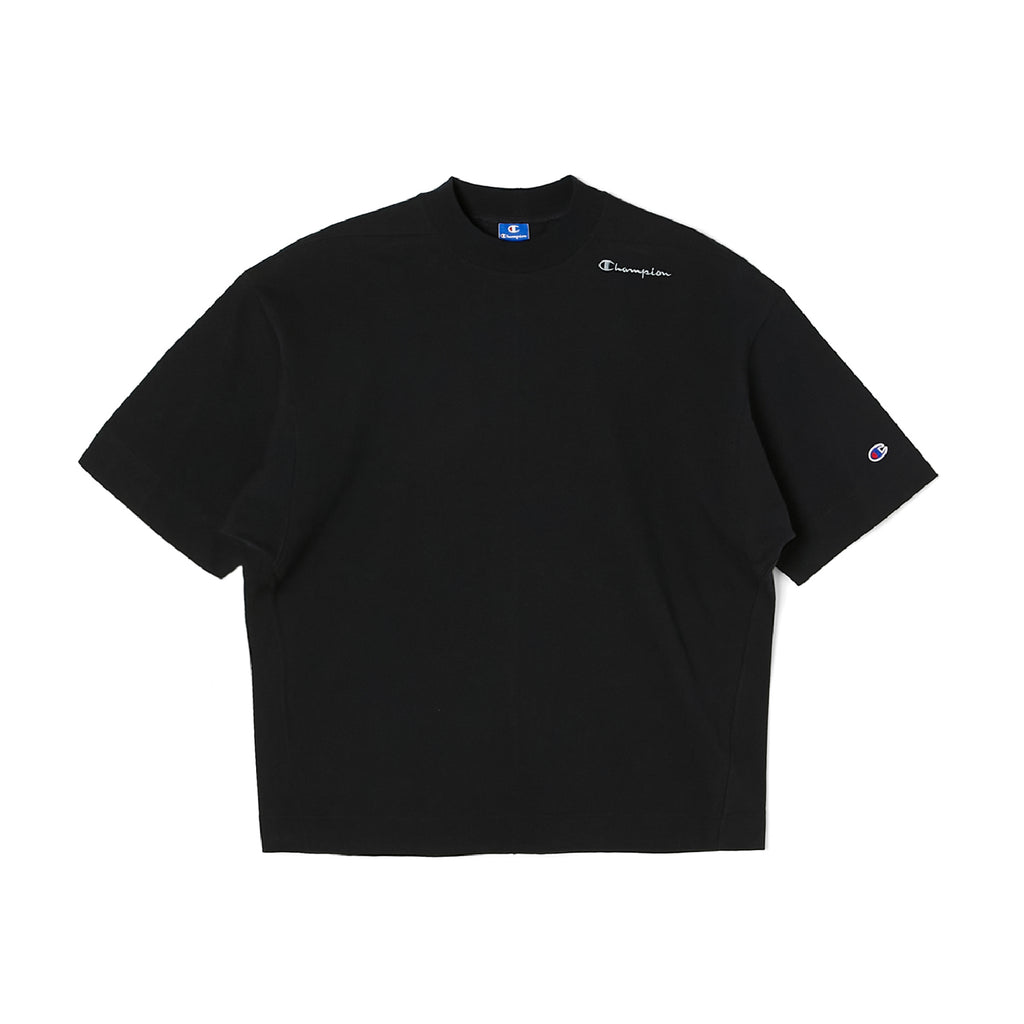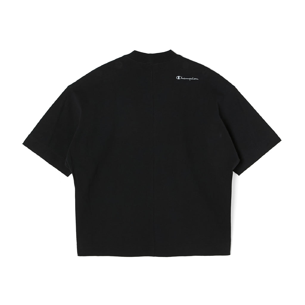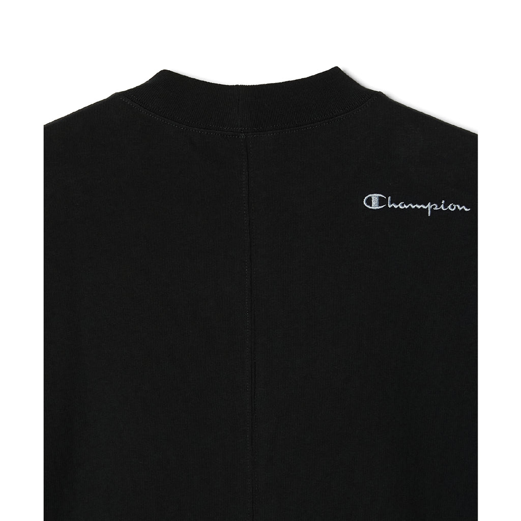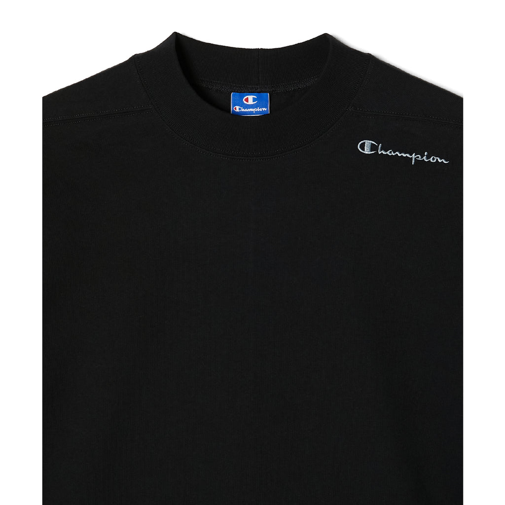 ・センターバックシームを採用。身体に沿うように肩線とサイドシームを前に寄せた立体裁断で組み上げられたデザイン。前身頃はセットイン、後ろ身頃はドルマンスリーブを組み合わせたスプリットドルマン。やや詰まったネックリブ、袖と裾の折り返しを太めに設定することで、フラットで上品な印象に。左肩と右背面に、Championのスクリプトロゴをエンブロイド。左袖にはチャンピオンの Cロゴワッペンを配置。タグは80’s~90’sに生産された通称「青刺繍タグ」をベースにNEW WEAVE専用タグを製作。