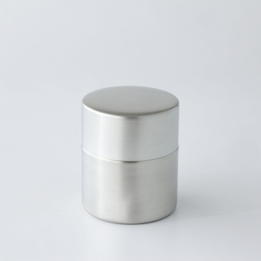茶筒で大切な事は、食品の保管に適した高い気密性。内蓋も外蓋もとても精密で締まりが良く、外気を遮ります。角を落とした丸みのあるフォルム。時を経た色と質感は、すんなり手と空間になじみます。