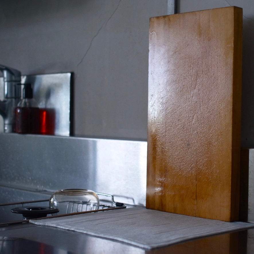 樹齢200年以上の良質な木曽桧(ヒノキ)の無垢材で作った一枚板の俎板です。桧には独特の香り成分でもある芳香樹脂成分(ヒノキチオール)が含まれており、腐りにくくカビの繁殖を抑えてくれるため、古くから俎板に適した素材として重宝されてきました。程よい弾力があるため、プラスチックやゴム製の俎板と比べて刃当たりが良く、包丁との相性が◎。年輪が緻密で且つ水分を吸収するので食材が板になじみ易く、滑りにくいのも特徴です。毎日使う道具だからこそ、手が疲れにくいのも嬉しいところです。