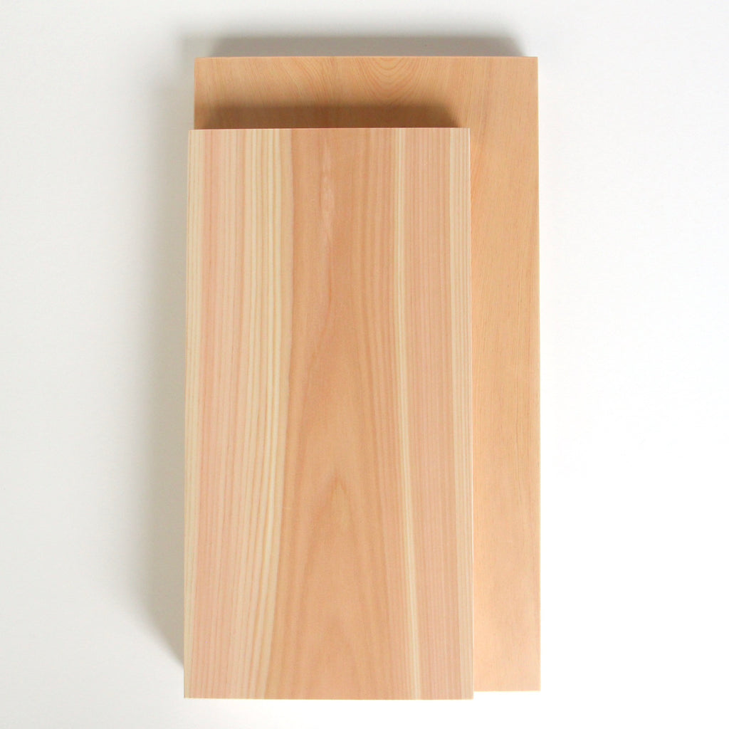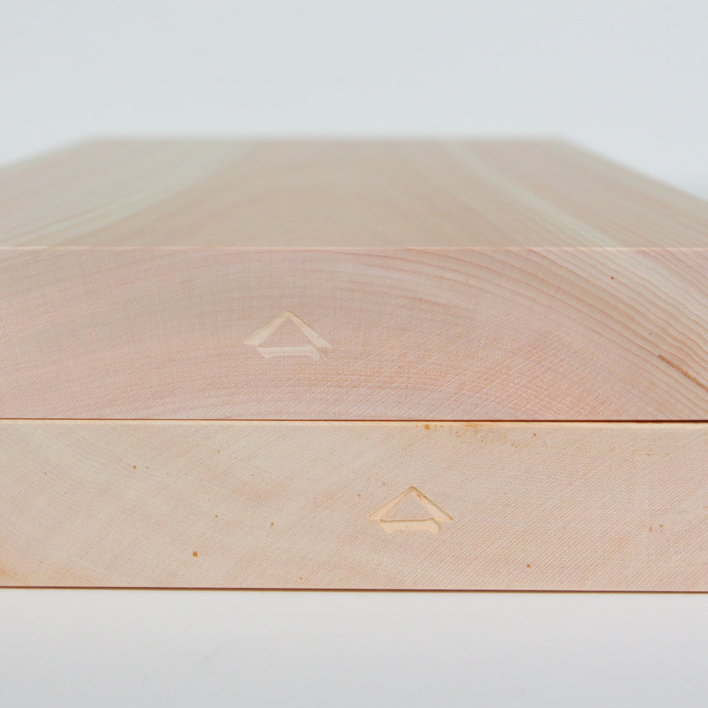 樹齢200年以上の良質な木曽桧(ヒノキ)の無垢材で作った一枚板の俎板です。桧には独特の香り成分でもある芳香樹脂成分(ヒノキチオール)が含まれており、腐りにくくカビの繁殖を抑えてくれるため、古くから俎板に適した素材として重宝されてきました。程よい弾力があるため、プラスチックやゴム製の俎板と比べて刃当たりが良く、包丁との相性が◎。年輪が緻密で且つ水分を吸収するので食材が板になじみ易く、滑りにくいのも特徴です。毎日使う道具だからこそ、手が疲れにくいのも嬉しいところです。