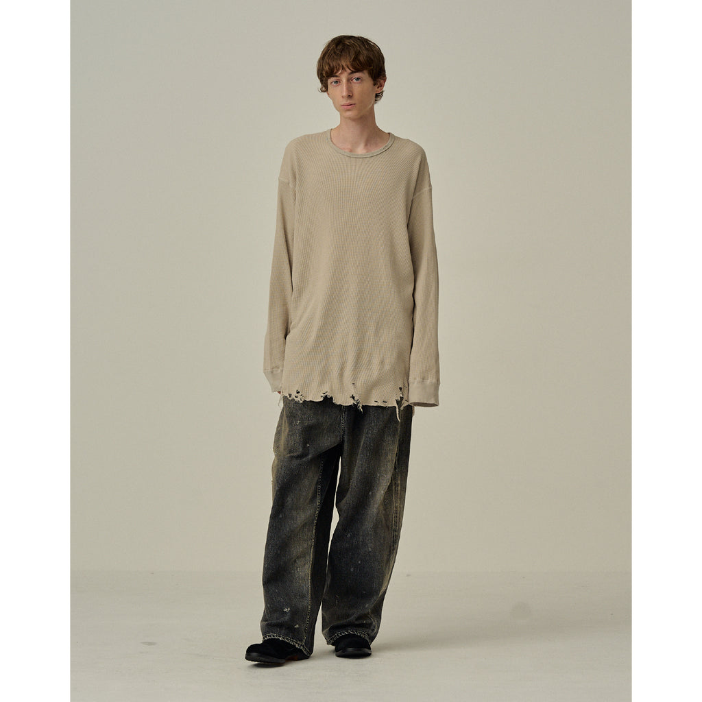 ※この製品は風合いを出すため、ダメージ等の加工を施しております。着用時はダメージ箇所に注意してご着用ください。全てのダメージは手作業で行なっておりますので、多少の個体差が出る可能性がございます。洗濯時のお取り扱いにはご注意ください。
