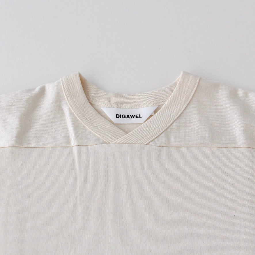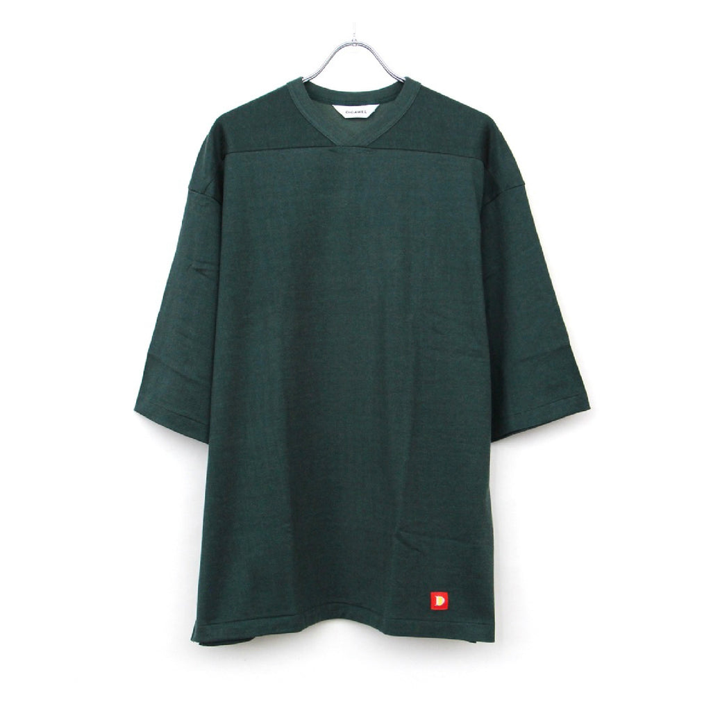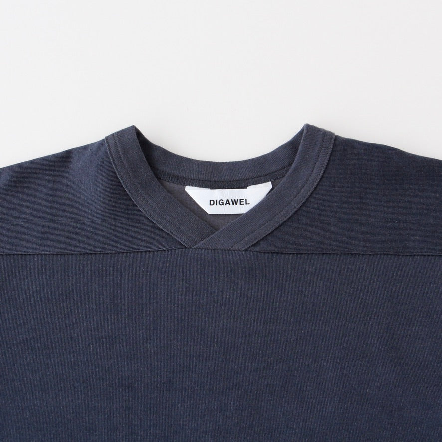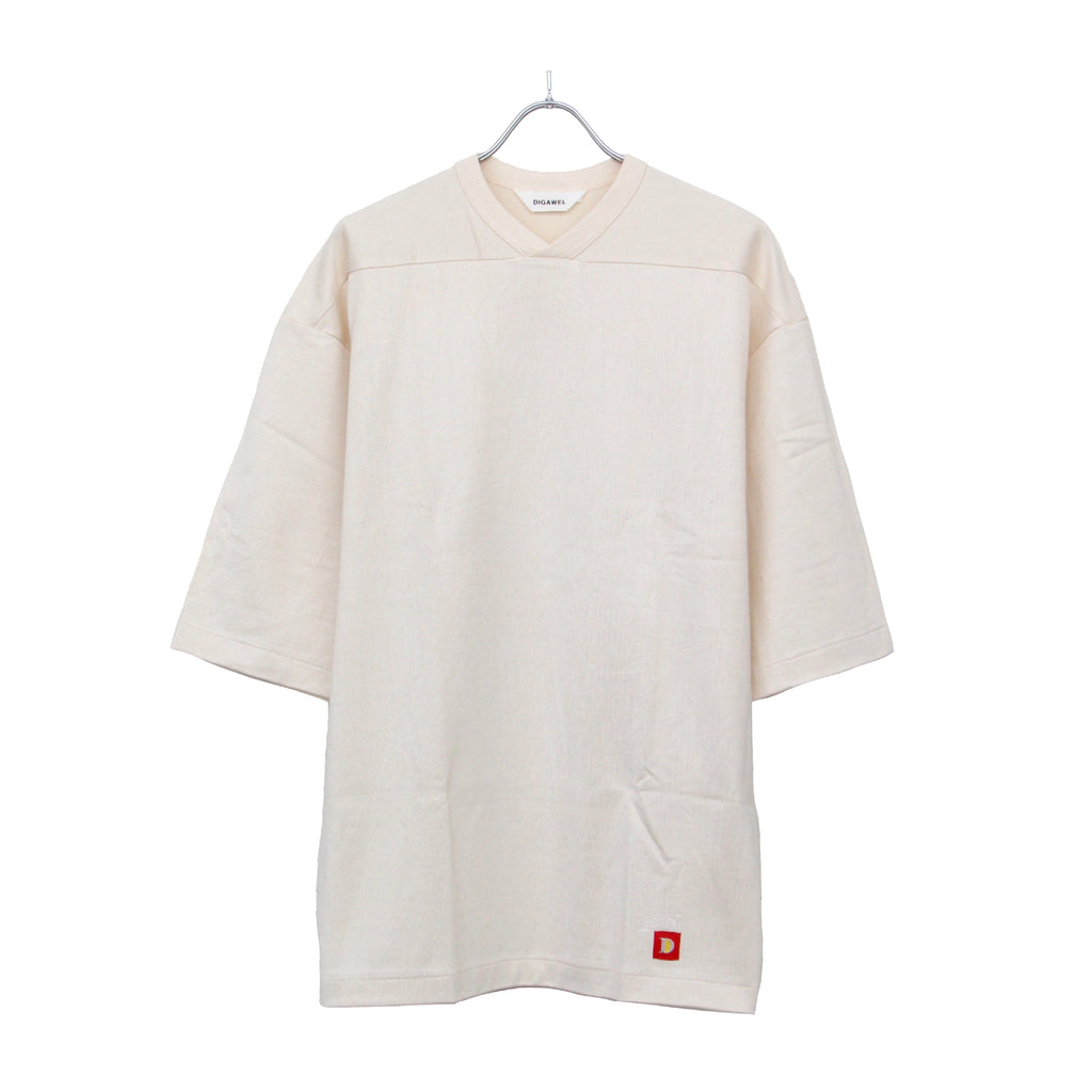 首元は浅めのVネックです。赤のDのタグは、2024SSを象徴しています。