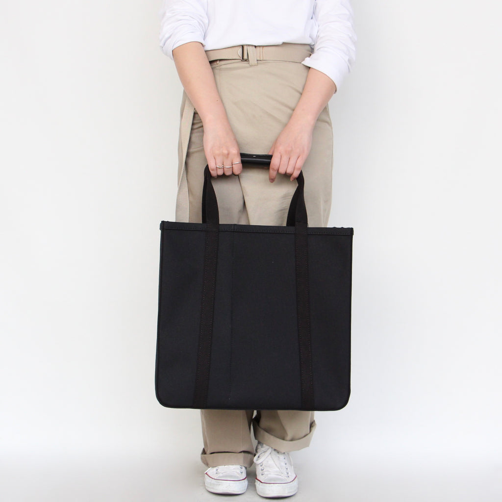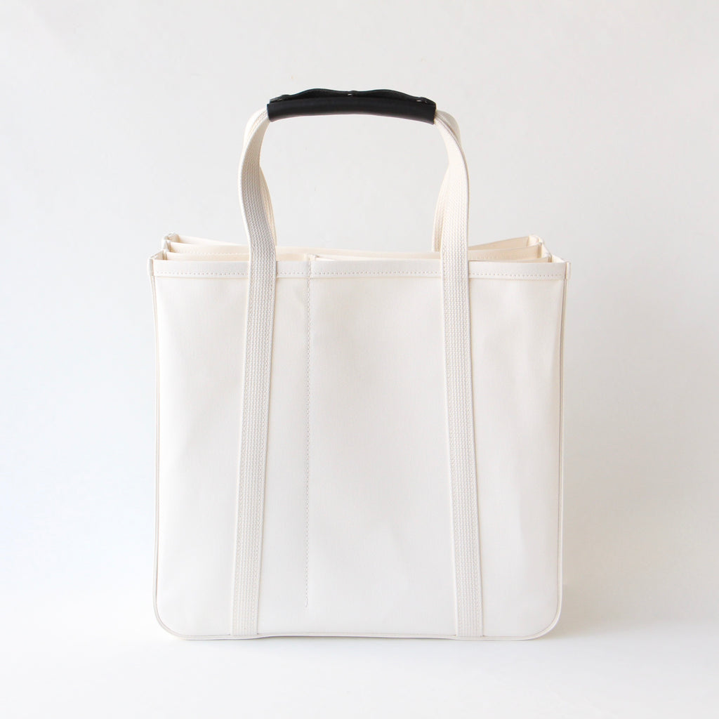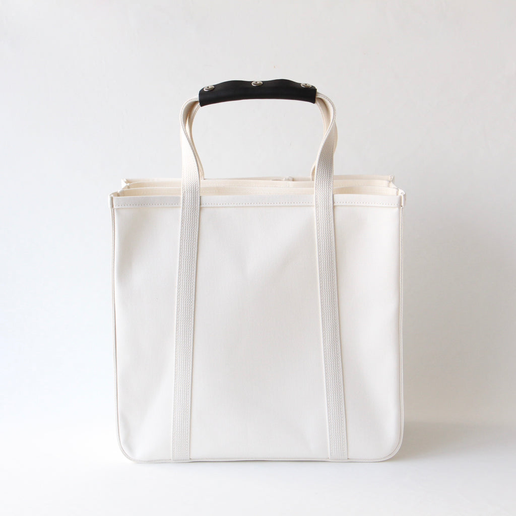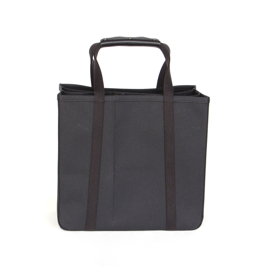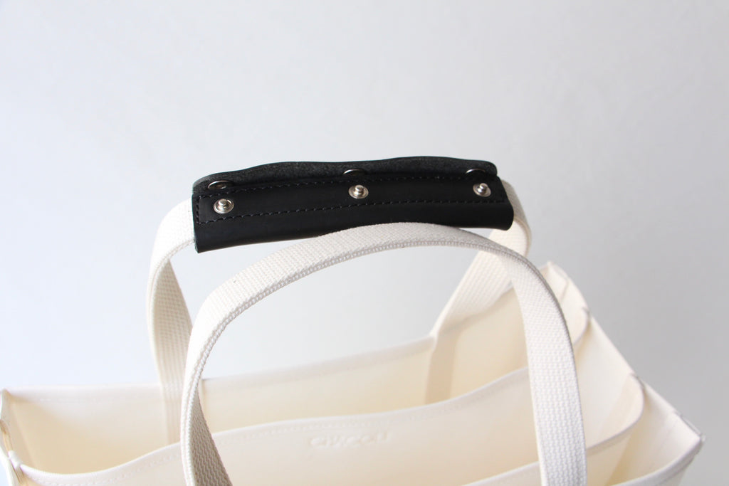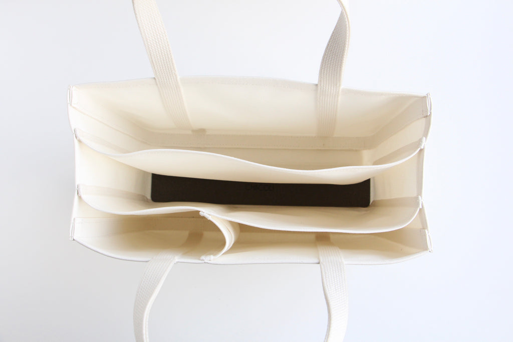 パソコン等薄型電子機器を収納することを想定し、仕切りのひとつにはレザーの底板を入れています。
