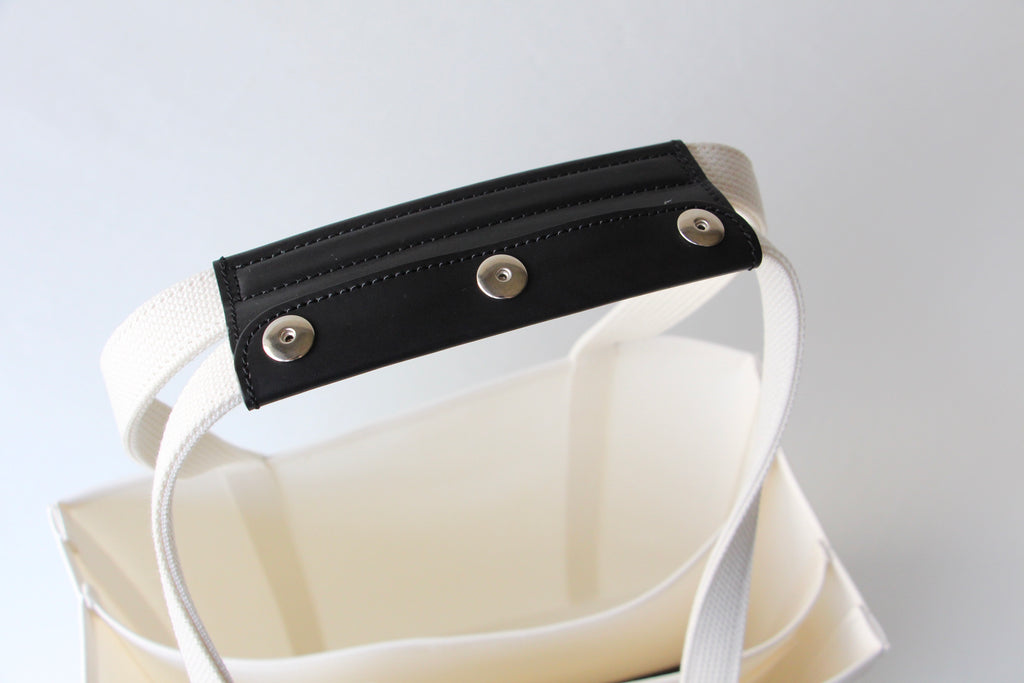 このサイズのみ、重たい荷物を持つことを想定して作っているためハンドルのグリップ部分の仕様が異なります。ハンドルを並列に束ねる仕様になっていますが、他サイズと同じようにひとつにまとめることも出来る2way仕様です。