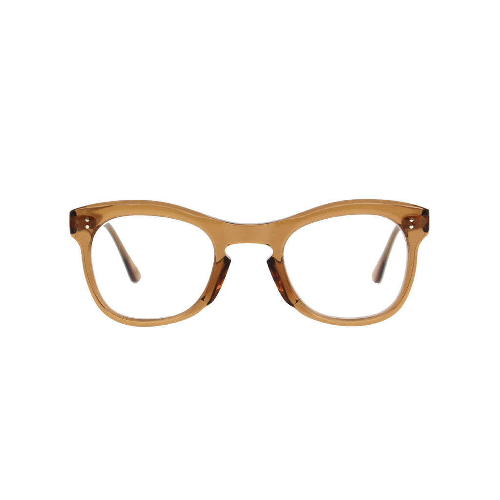 釣り上があったブロウラインにはカッティングを施し、フレームの印象に奥行きを与える。ありそうでないウエリントンタイプのキーホールディテール。