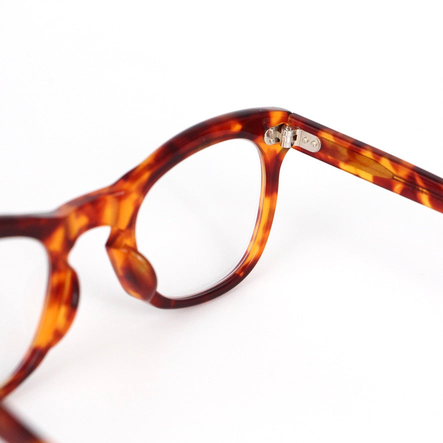 釣り上があったブロウラインにはカッティングを施し、フレームの印象に奥行きを与える。ありそうでないウエリントンタイプのキーホールディテール。