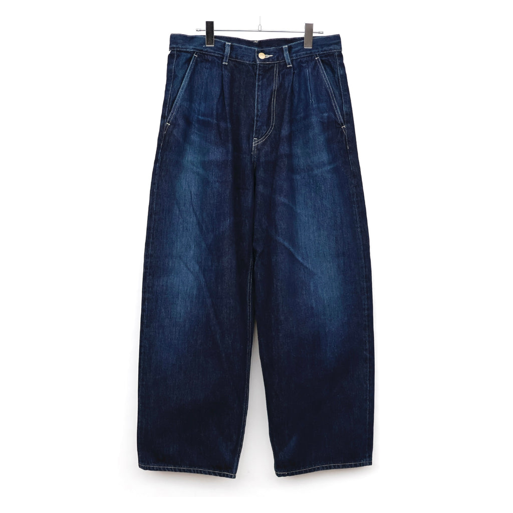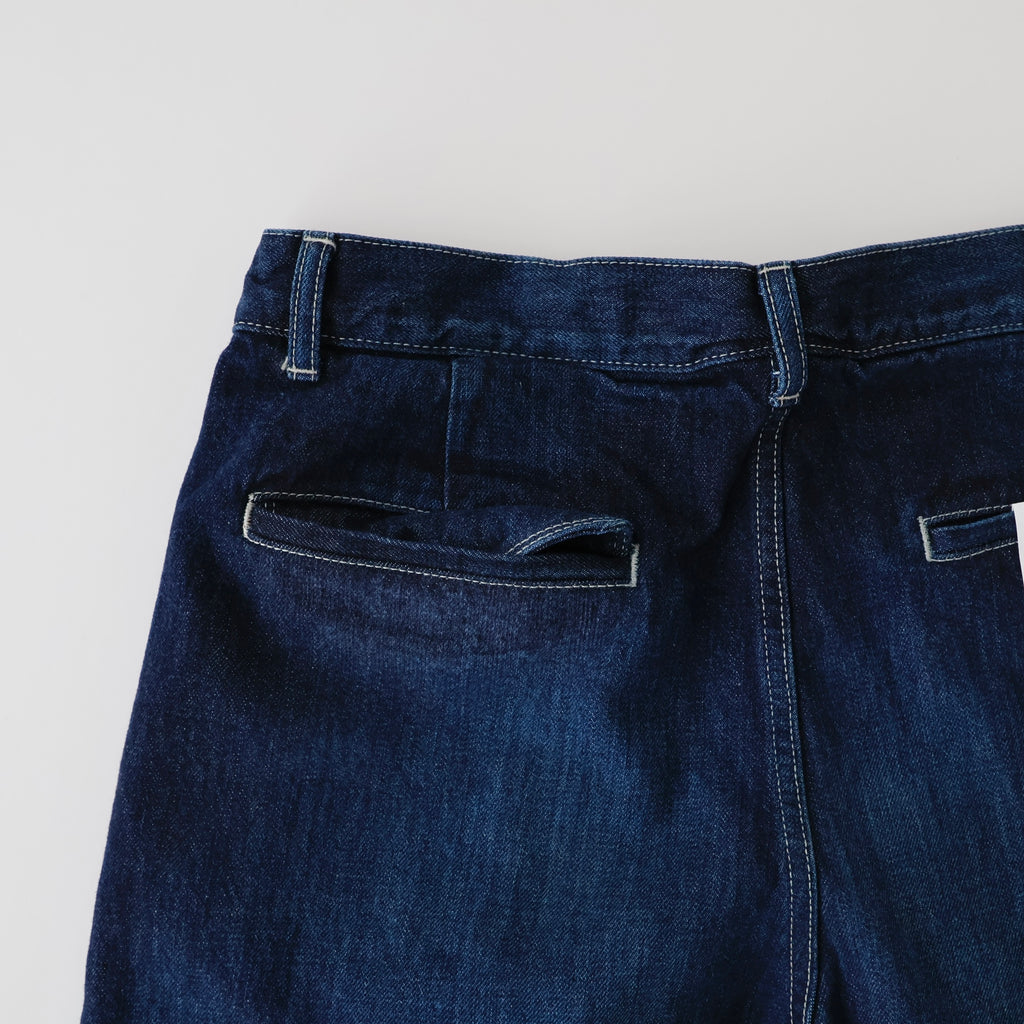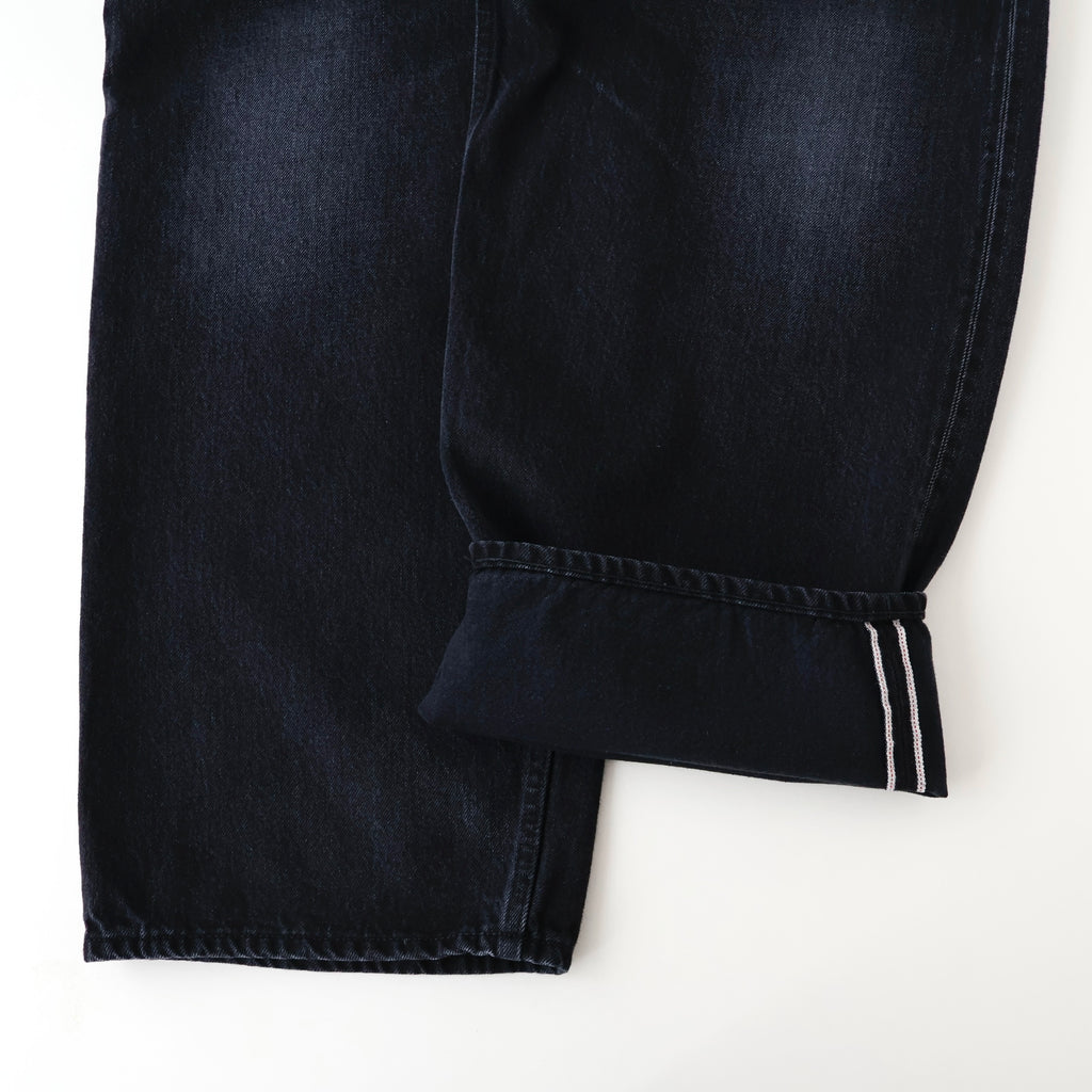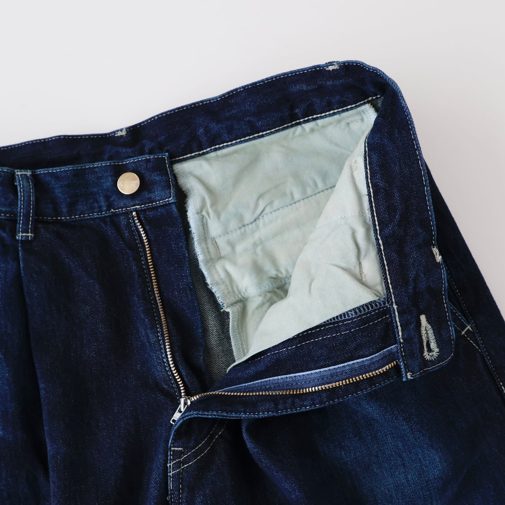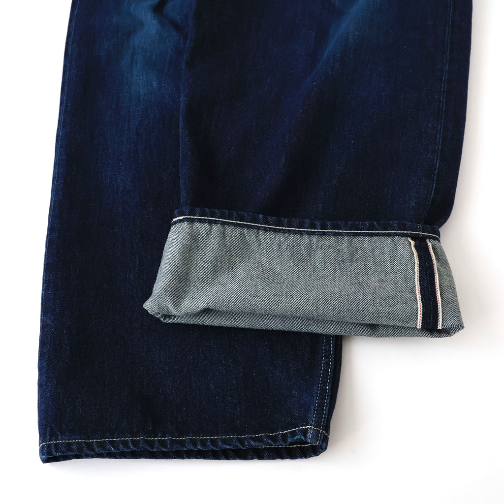 旧式力織機でゆっくりと織り上げることで生まれる、生地表面のざらっとした凹凸やムラがデニム本来の風合いを感じさせる魅力的な素材。ダークフェイドはメリハリのある濃淡が特徴です。
