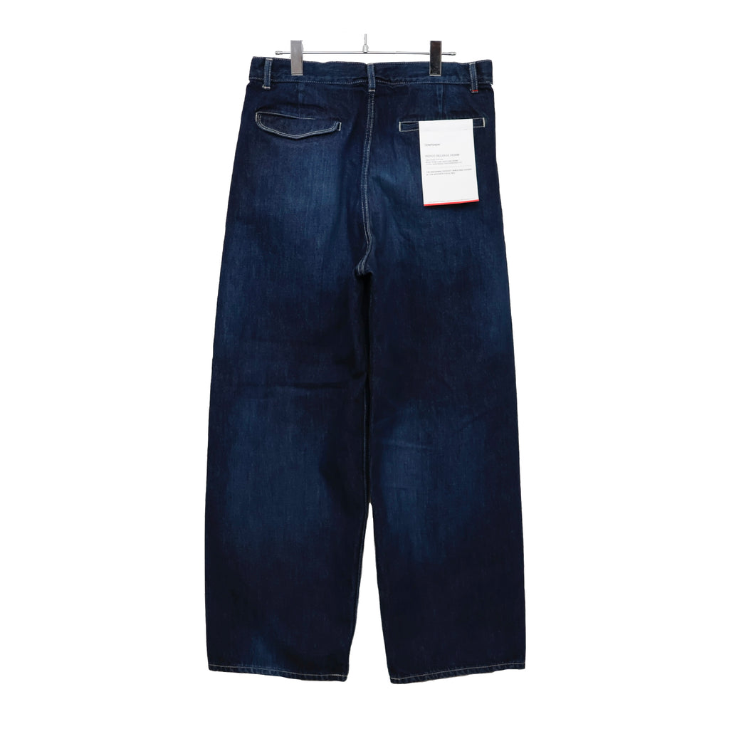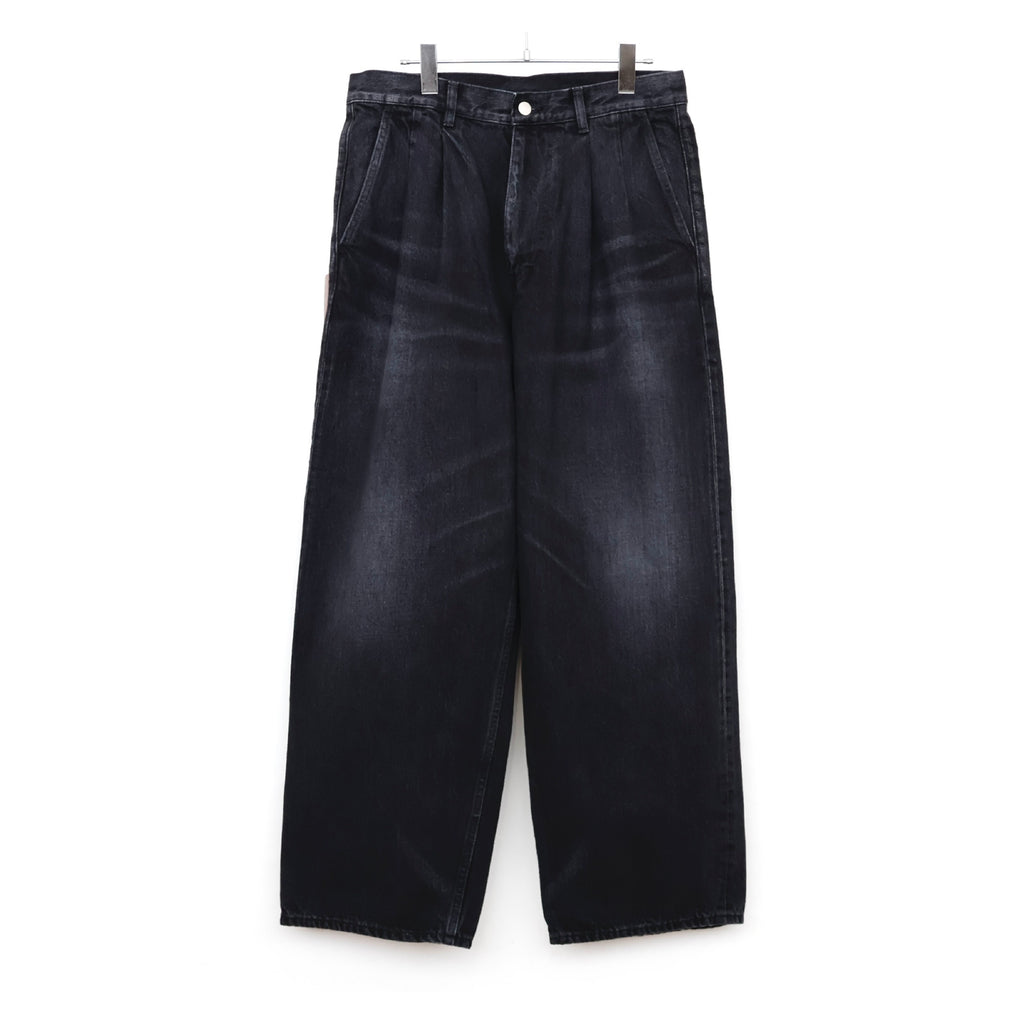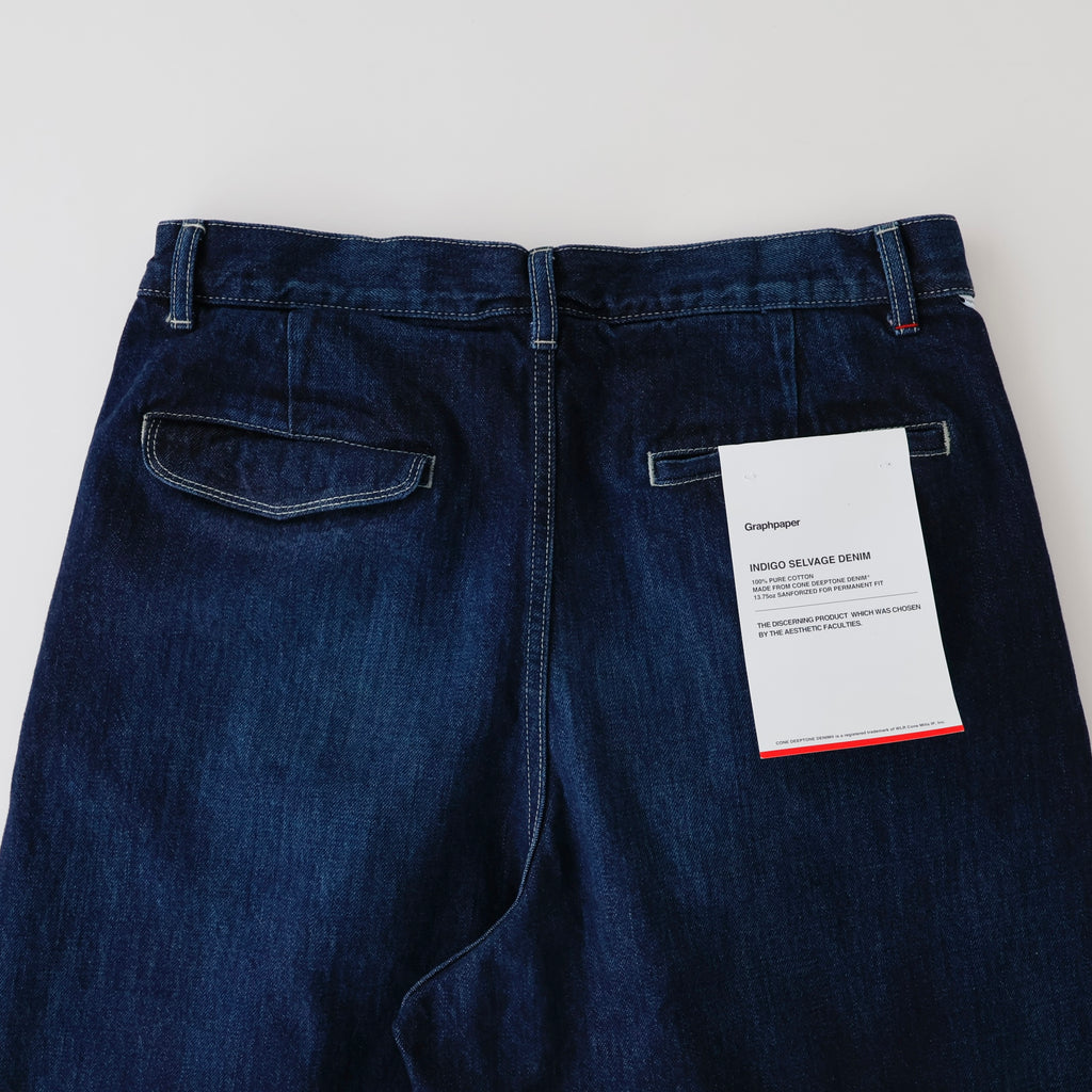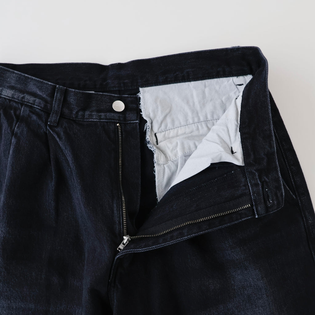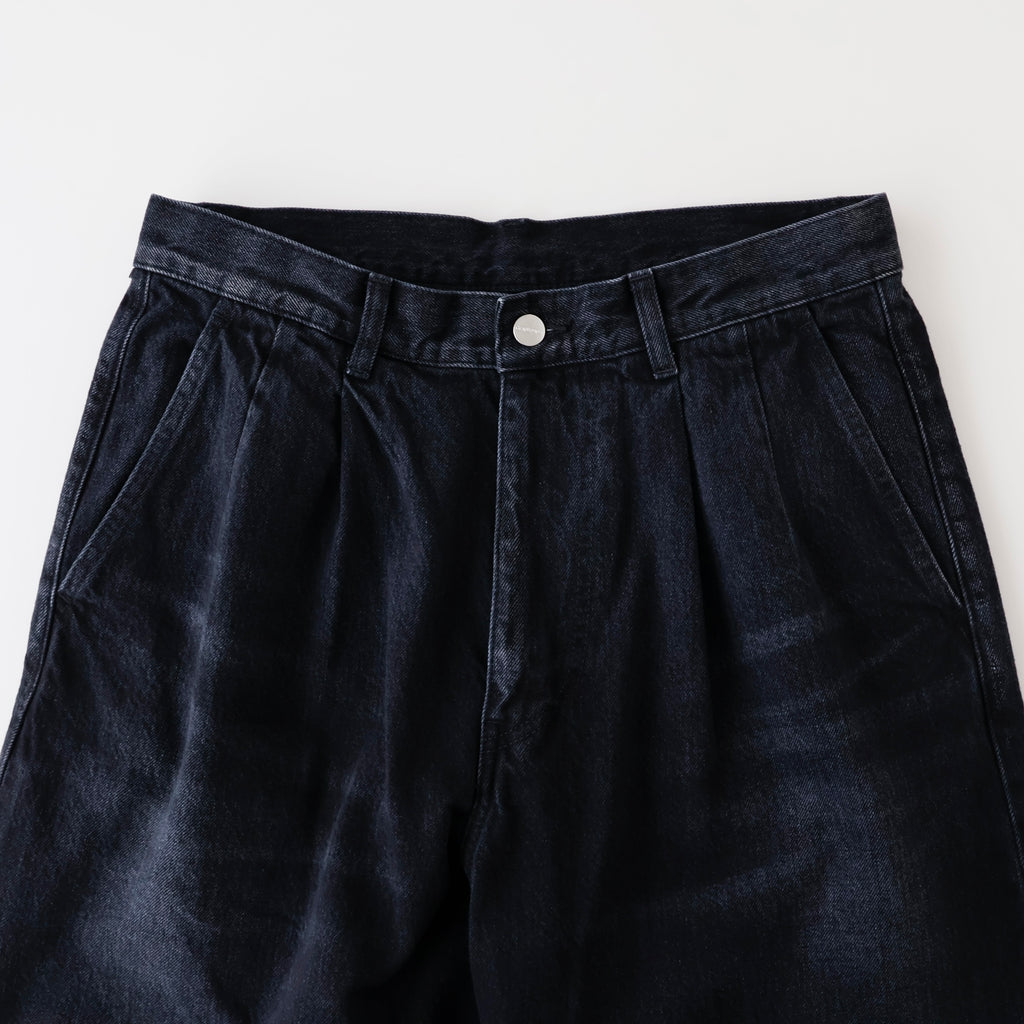 ウエストにはタックが入り、ヒップからワタリにかけて適度な余裕があるワイドストレートパンツ。