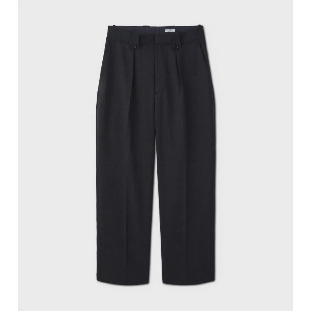 夏のサマーウール定番素材として細番手でザックリと織られ、通気性が非常に優れています。ワンタック仕様のスラックスになります。
