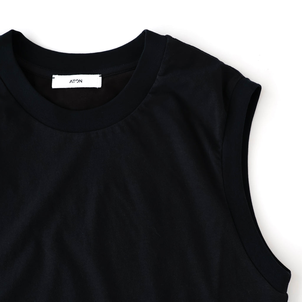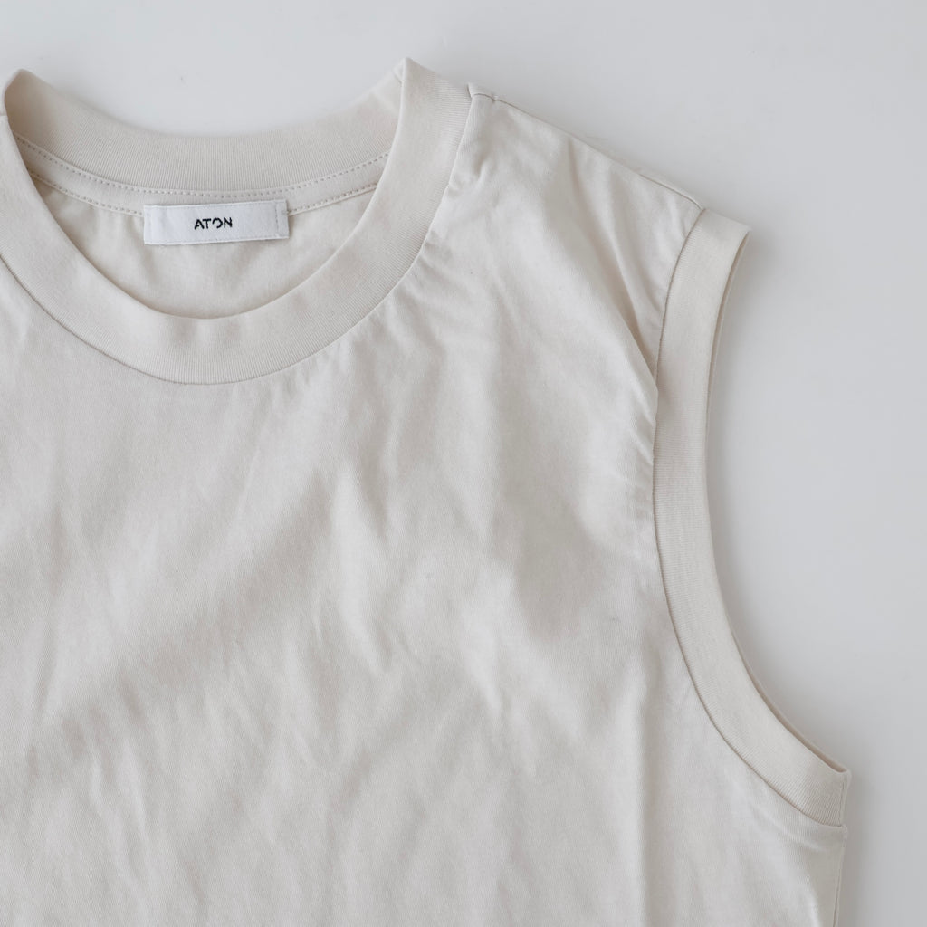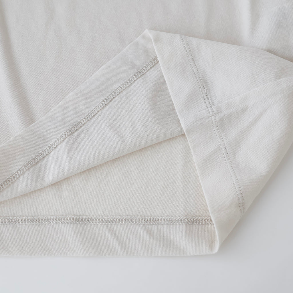 インドで手摘みされたSUVIN COTTONを、和歌山市のニッターにて編まれた素材です。紡績の段階で特別な工程を入れる事で、強撚糸なのに大変美しい発色を可能にした糸を使用しています。2回起毛加工を加えることでスウェードのような繊細な起毛タッチと柔らかさを出した、ATONオリジナルジャージ素材です。