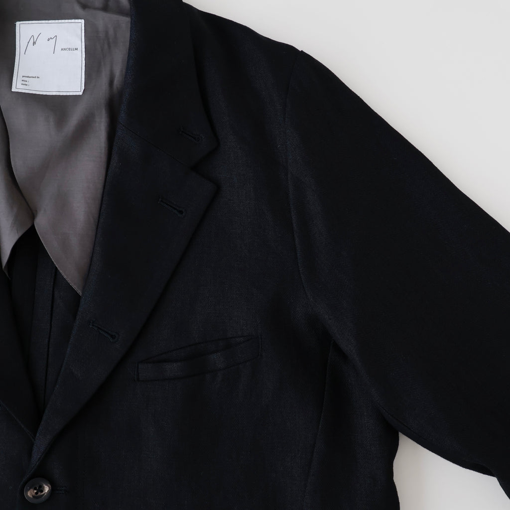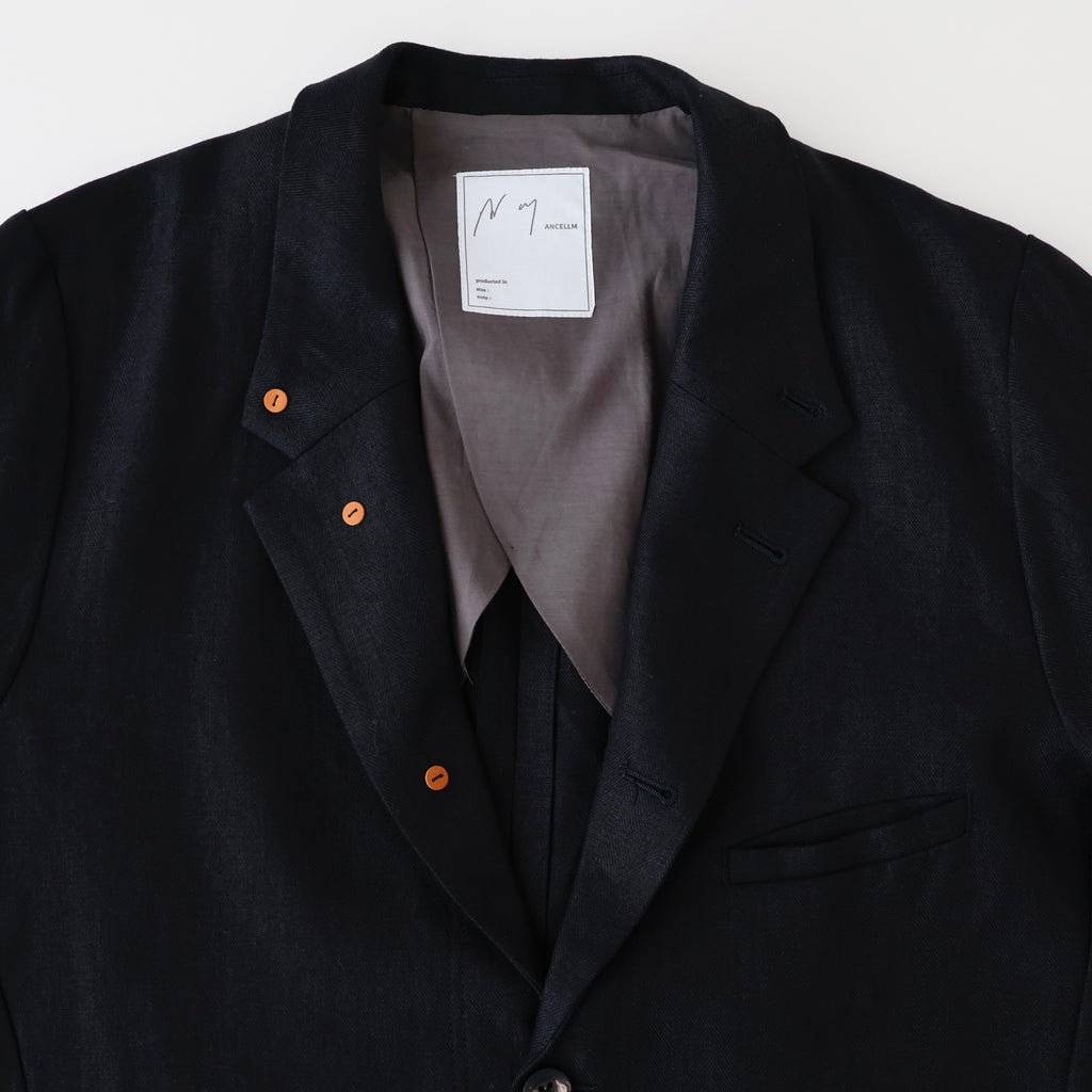 ドレスのムードを残しながらも堅くなりすぎないバランスを目指し、ゴージラインと肩線は低めに設定。フロントからラペルまでボタンを連ね、ボタンの掛け方次第で多様にスタイルを楽しめる仕様と致しました。