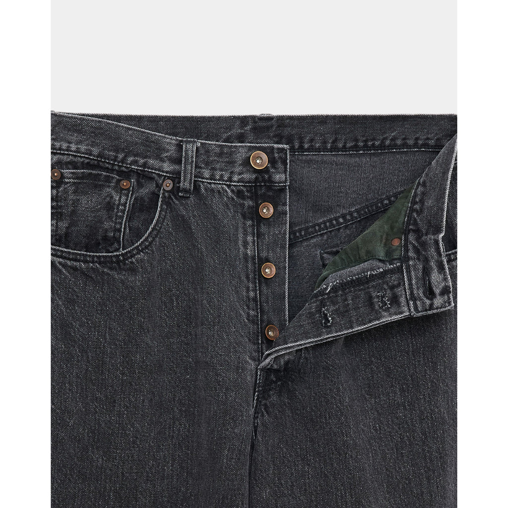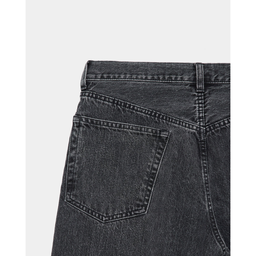 すっきりとした腰回りですが、わたり幅と裾幅の寸法はほぼ同じのストレートシルエット。従来のデニムパンツと比べて浅めの股上なので、タックインした時にハイウェストには見えず収まりの良い腰回りです。