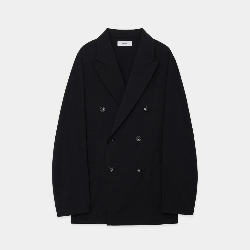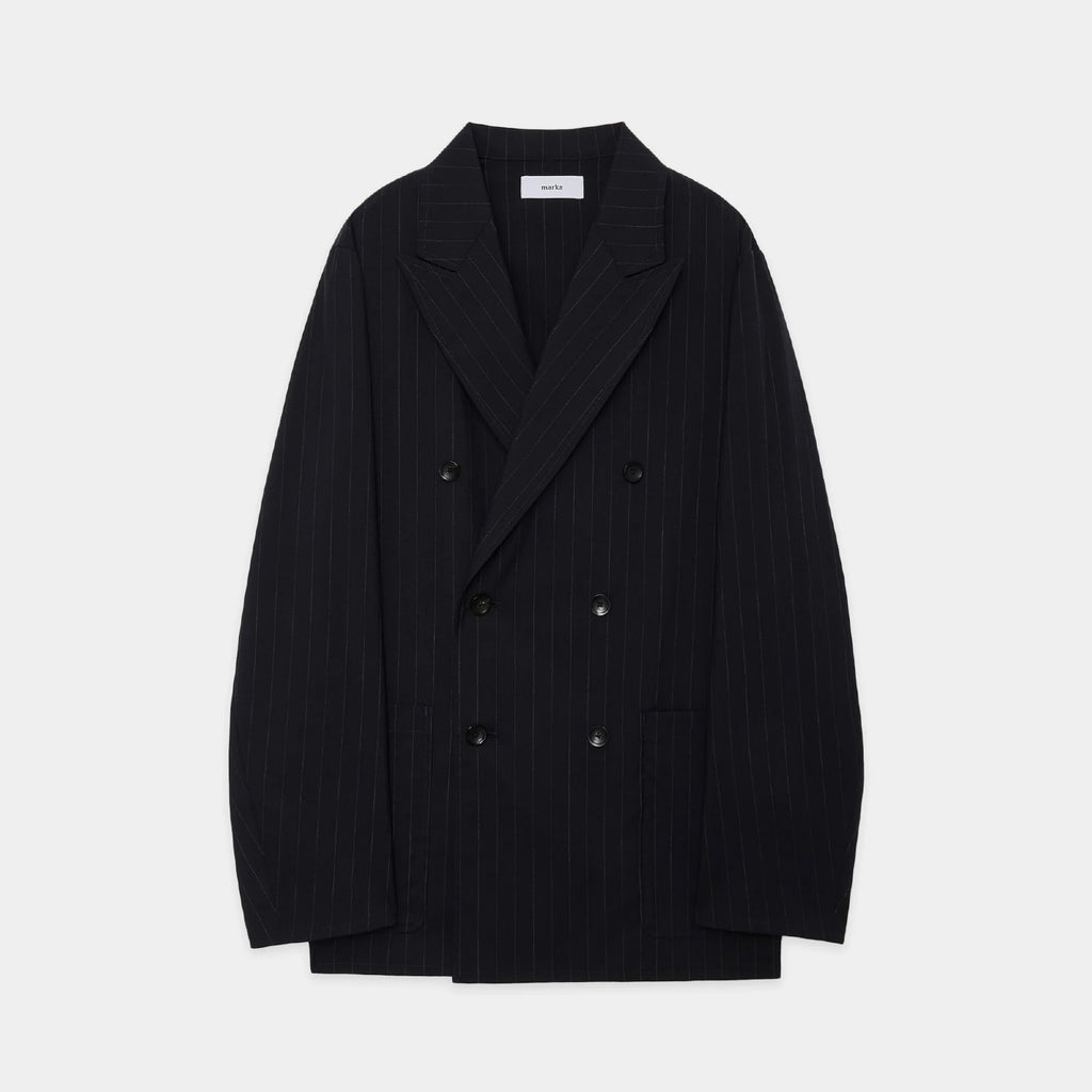 ピークドラペルと6つボタンデザインで重厚感を表現しながら、腰ポケットはパッチにすることでカジュアルさをプラス。そして、裏地をつけずに一重仕立てにすることで軽い着心地にしています。