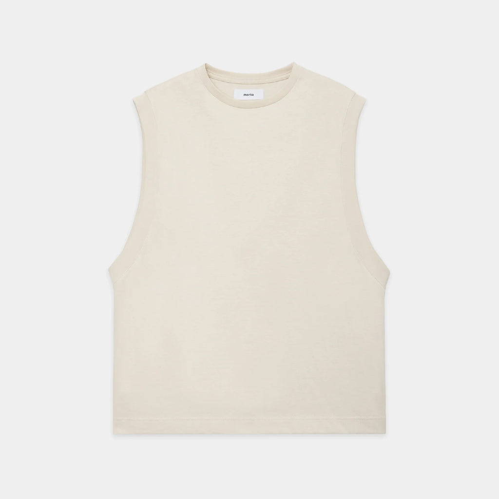 タンクトップとのレイヤードで、汗ばむ時期でも風通りの良さを感じていただき、快適に着ていただけます。