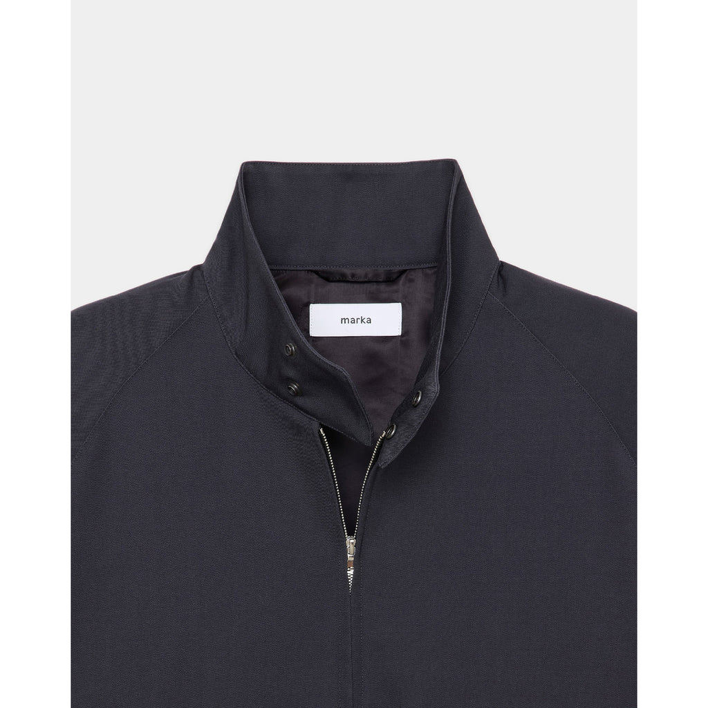 襟と袖は隠しドットボタン仕様で、全体をすっきりと仕上げました。総裏にはキュプラを用いて快適な着用感を確保。