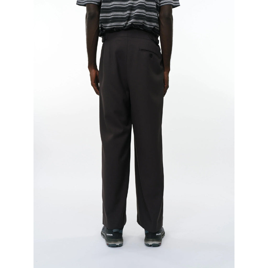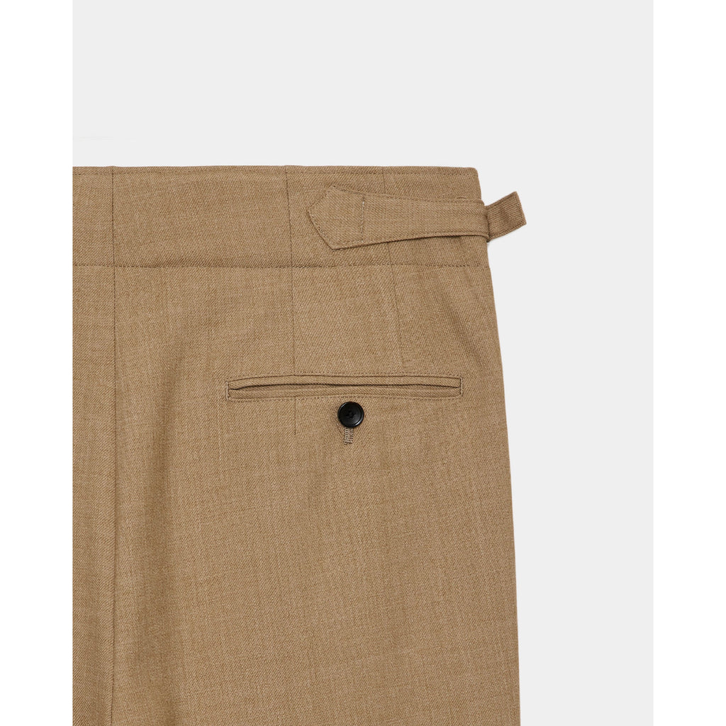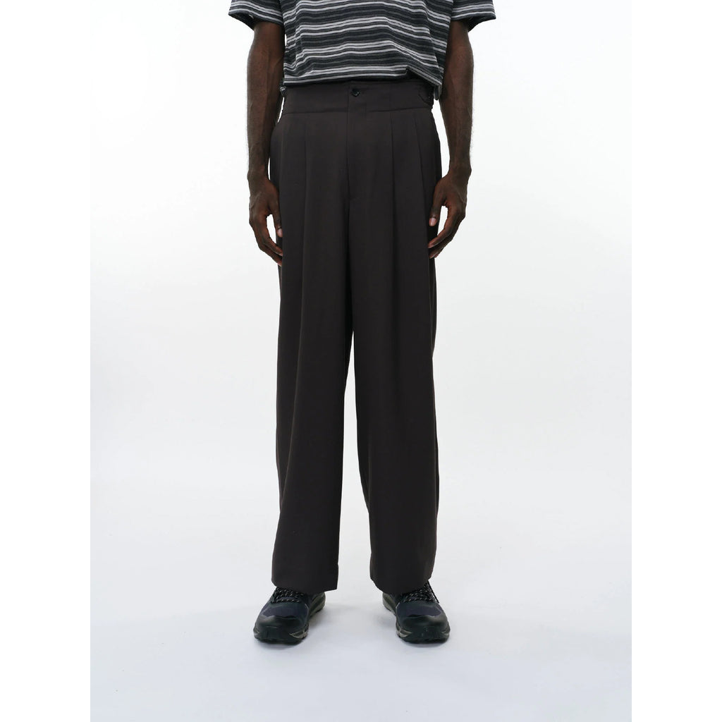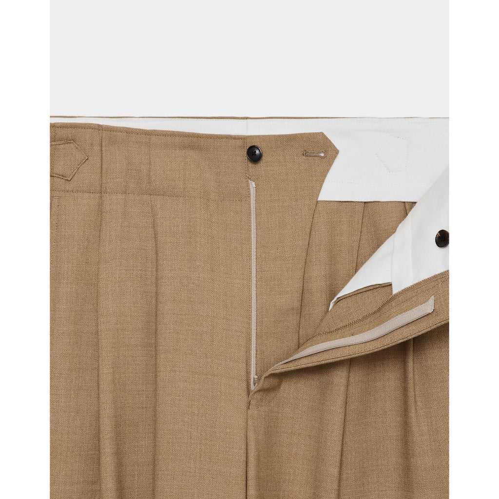 従来の1タック仕様を2タックに変更することで、フロントに豊かなドレープと陰影を生み出し、よりドレッシーな印象に仕上げています。ウエストは身頃続きのベルトレス設計で、約15cmの調整が可能なサイドアジャスト仕様。ハイウエストから腰履きまで、自在な着こなしを楽しめます。