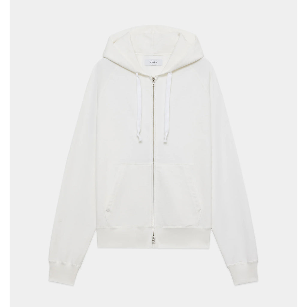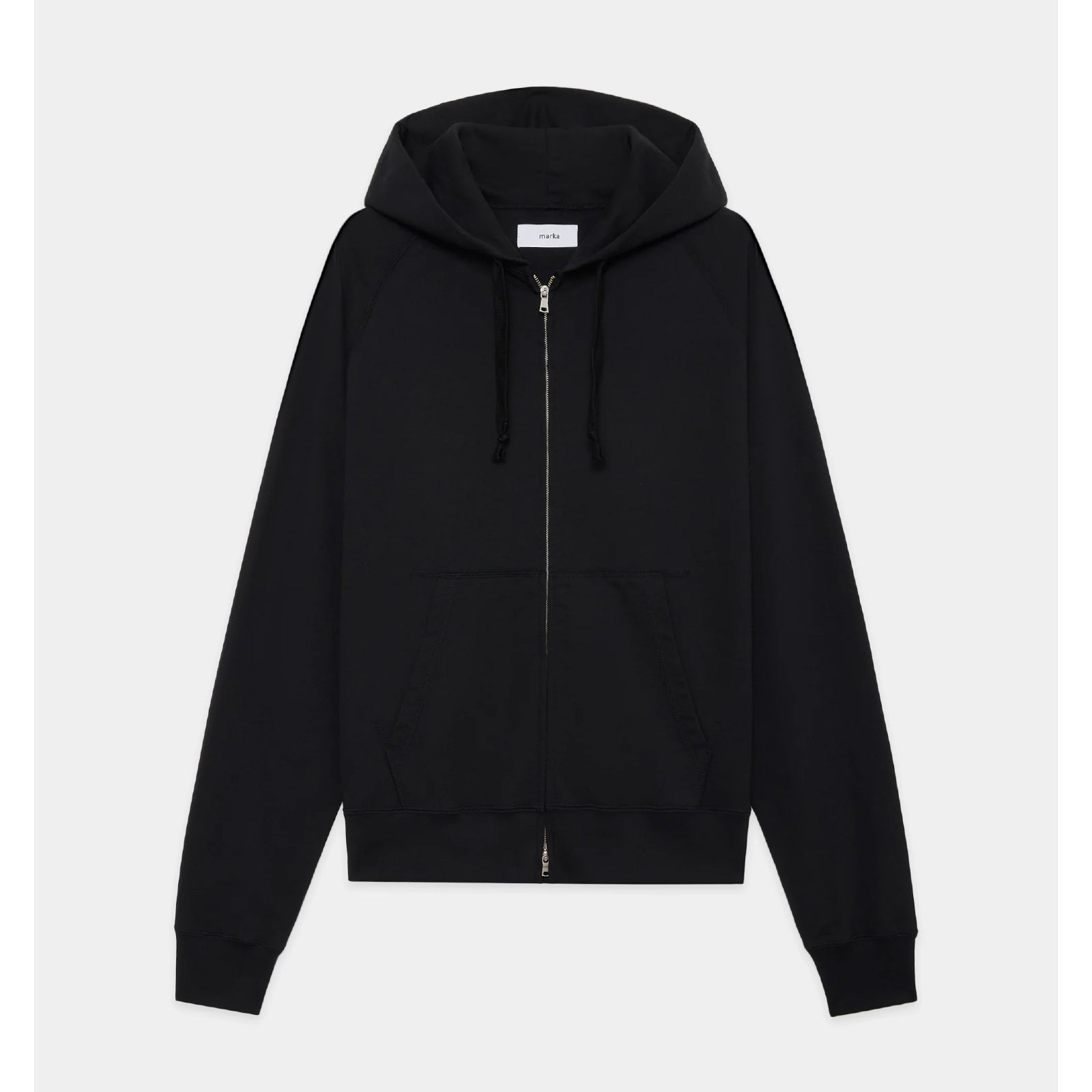 裾のリブは強く絞りすぎず、ストンと落ちる仕様にすることで、全体にまとまりのある印象に仕上げました。フロントにはダブルジップを採用し、スタイリングに合わせて開閉を調整できる機能性も備えています。