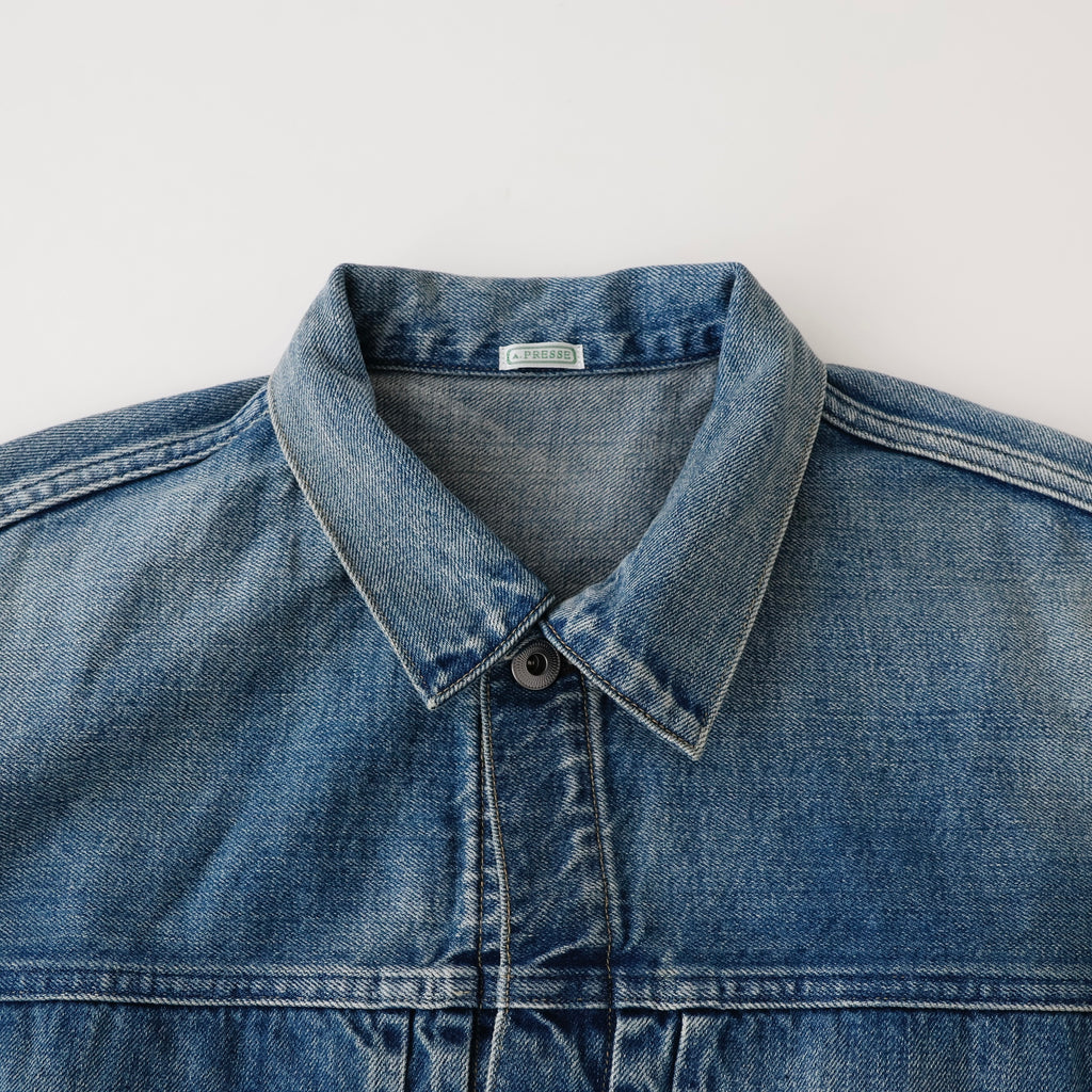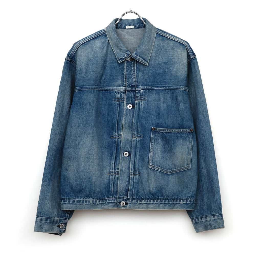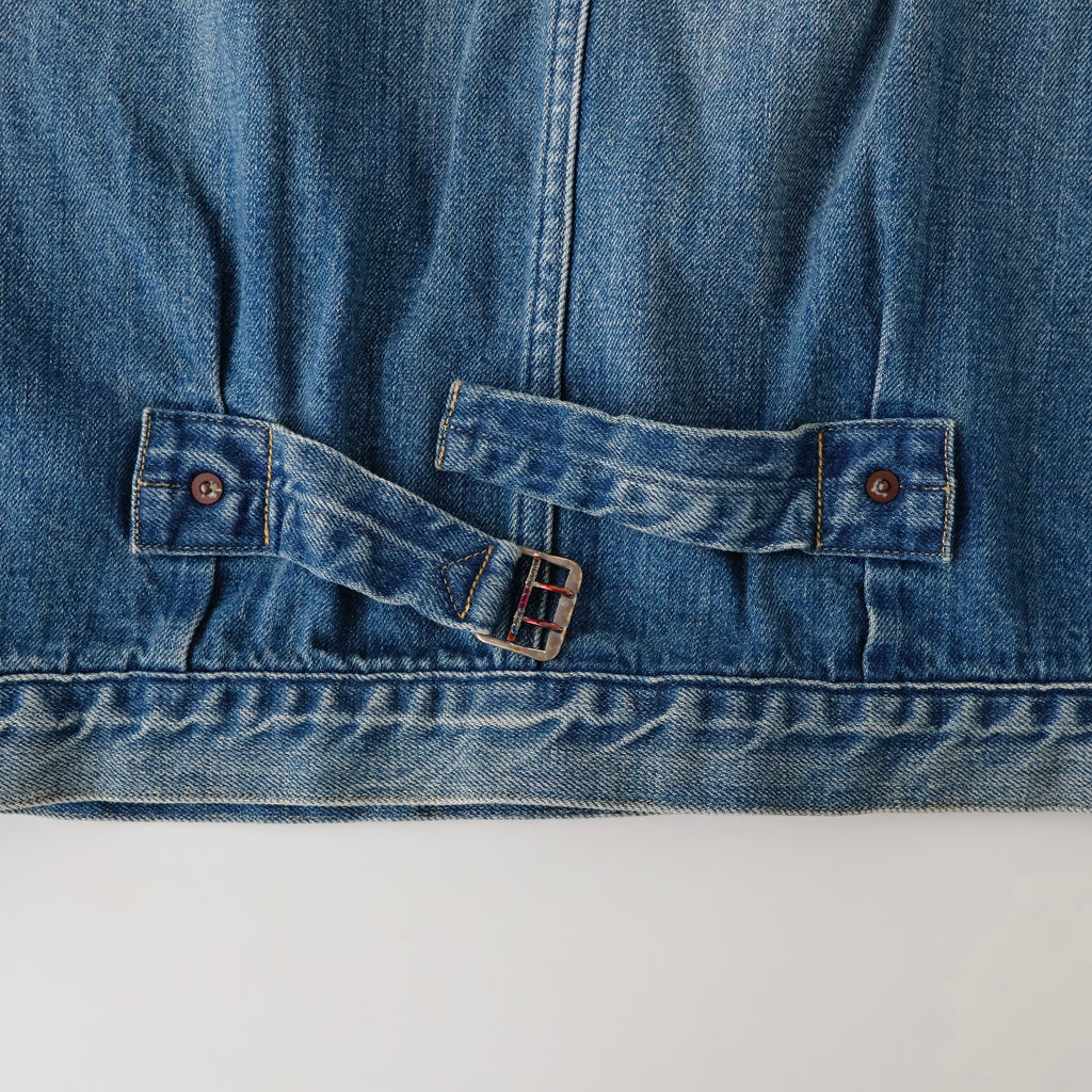 自然な経年変化を、手作業により再現。ヴィンテージを再現した加工感は、耳の色落ちまでこだわり、経年変化での退色したグレーカラーのセルビッチも特徴。