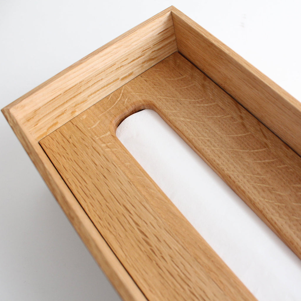 商品名は“ペーパータオル”の匣ですが、ティッシュケースとしてもご利用いただけます。木曽檜の材でできたティシューの匣は和室なイメージですが、重厚感のあるペーパータオルの匣は洋室にもとてもマッチします。