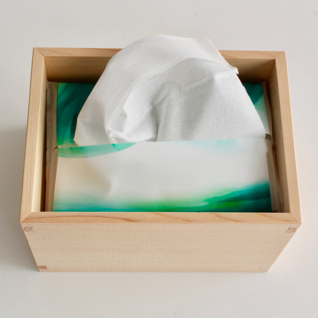 木曽檜を使った上質なポケットティッシュケース。木曽檜は日本三大美林のひとつとして有名な樹齢200年以上の天然木で、法隆寺や伊勢神宮などをはじめとした日本を代表する建造物に使用されている、優秀で高級な資材です。緻密で目の詰まったその美しい柾目は強度も高く、長くお使いいただけます。仕上げには塗装や加工をはじめ、釘やねじも使わず組み上げられており、無垢のままの素材本来の良さを感じることができます。ケースの中にティッシュをそのまま入れると、紙にほんのり移った檜の香りが楽しめます。