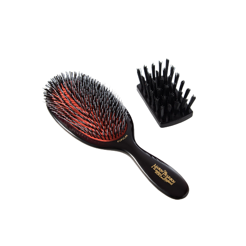 高品質な猪毛と、独自に設計されたクッションパッドを使用し、熟練の職人が手作業で仕上げたメイソンピアソンのヘアブラシ。
