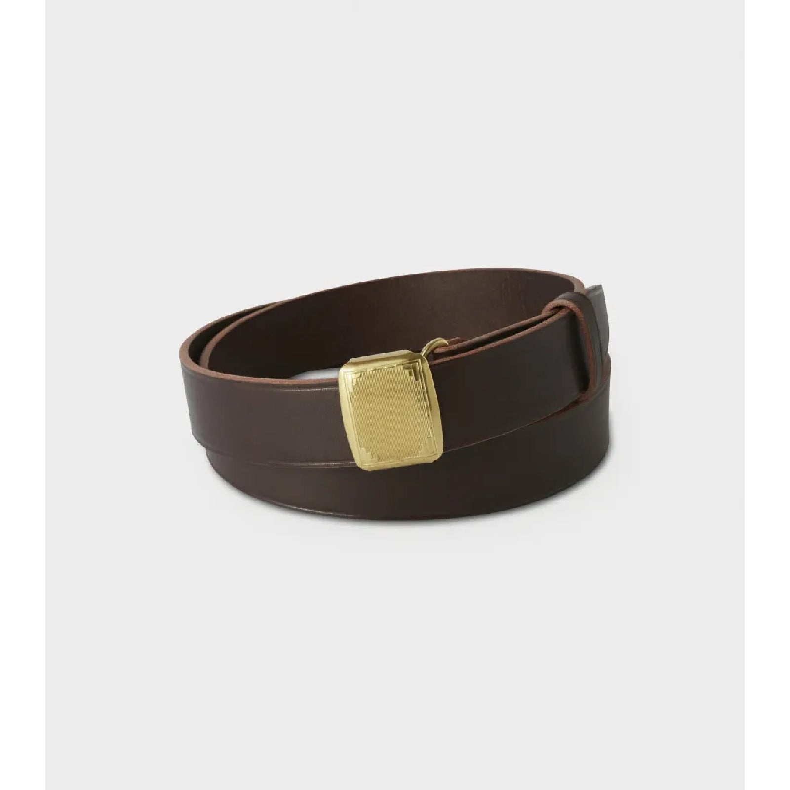 バックルにはさみ込んで留める、ホールレスタイプ。ボトムスやスタイルを選ばず使える汎用性の高さも魅力。