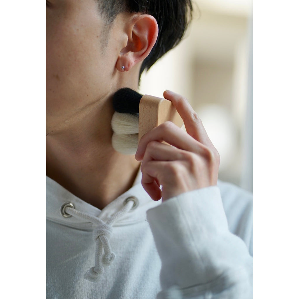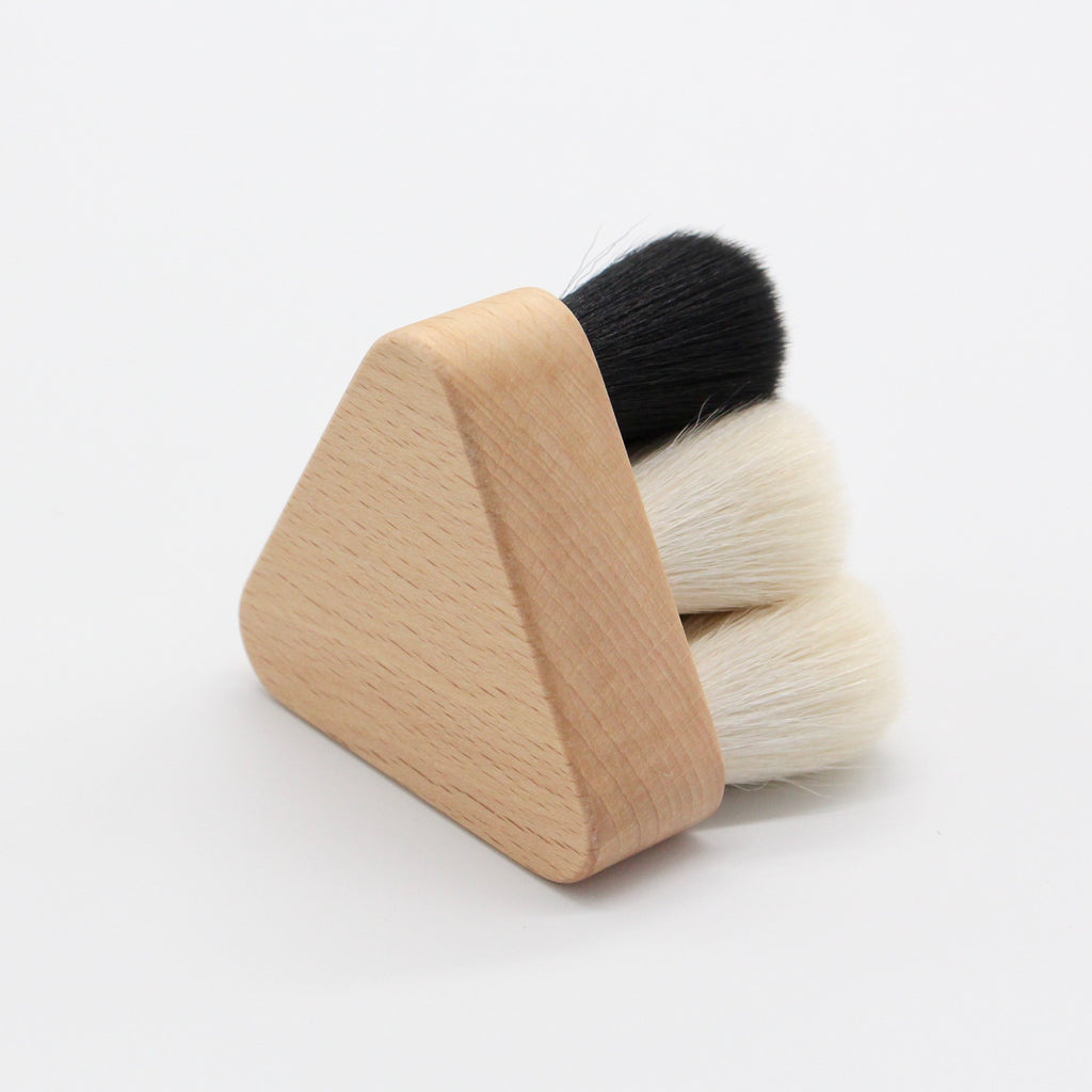 手のひらにコロンとおさまる三角の持ち手の感触と、2種類の違う穂先に触れながら穏やかな気持ちと生きかえるような感覚を存分にお楽しみください。