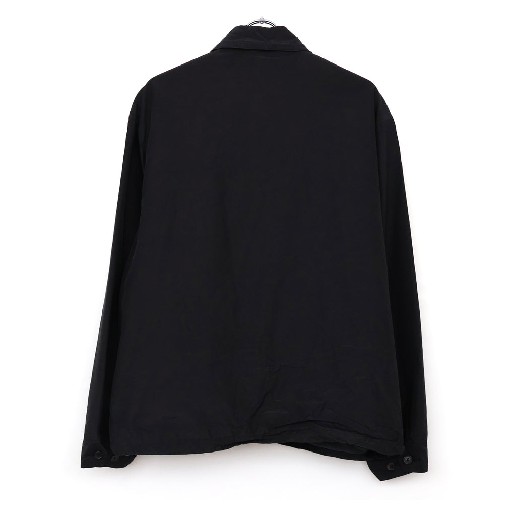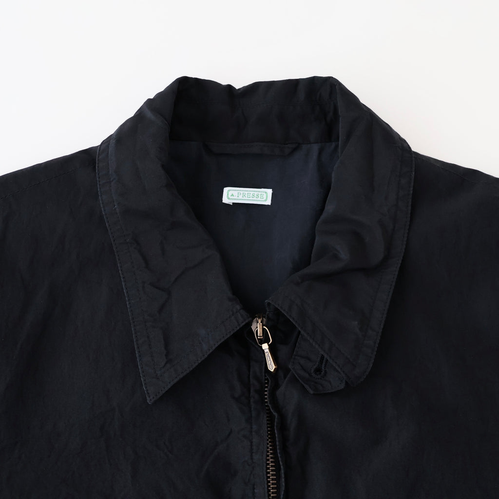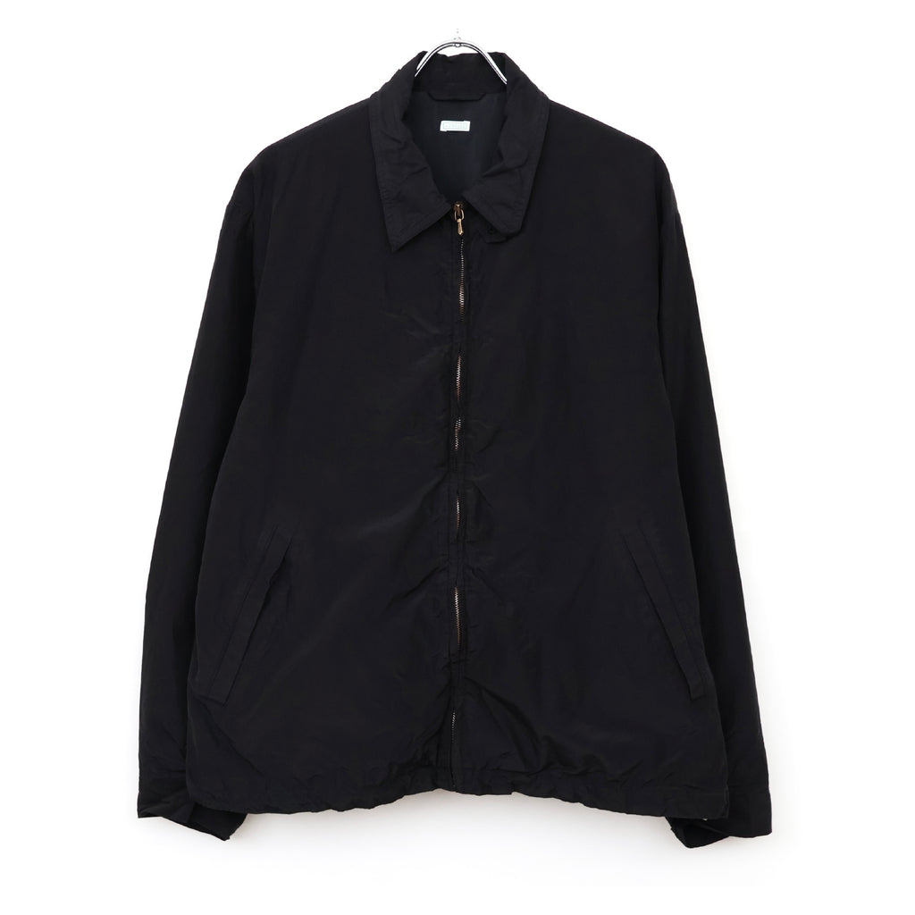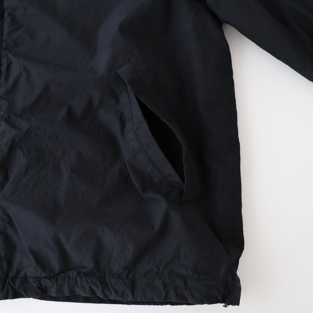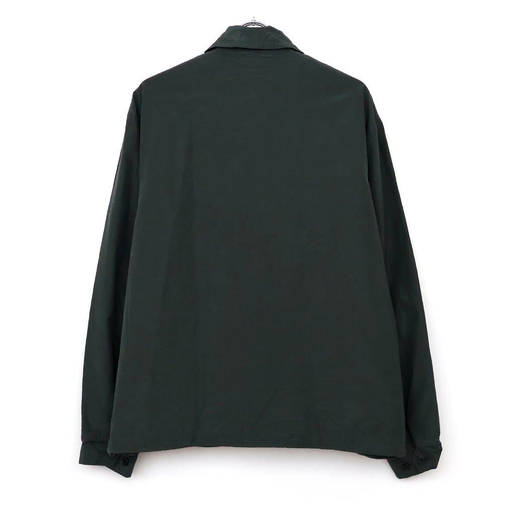 ナイロンのように見えて経に世界最高級と言われているブラジル産のフィラメントシルクを使用し、緯にエジプト産の細番手のコットンを引き揃えで織ったタフタ素材。高密度の経シルクに緯コットンを引き揃えで織る事により、平織り組織ながら柔らかめに若干のふくらみ感をだした。天然繊維最高級のフィラメントシルクにコットンを打つ事で、上質な光沢感と質感に仕上げた。