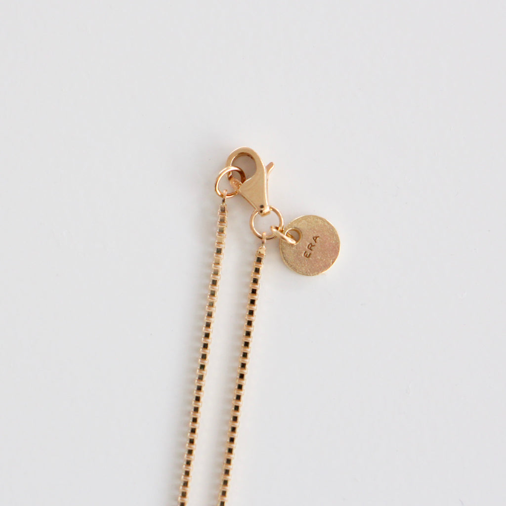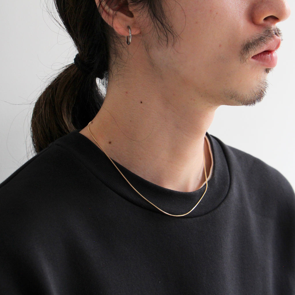 10金らしい、さわやかな色味が特徴。1mm幅の繊細なシルバーチェーンで作ったミニマルなネックレス。