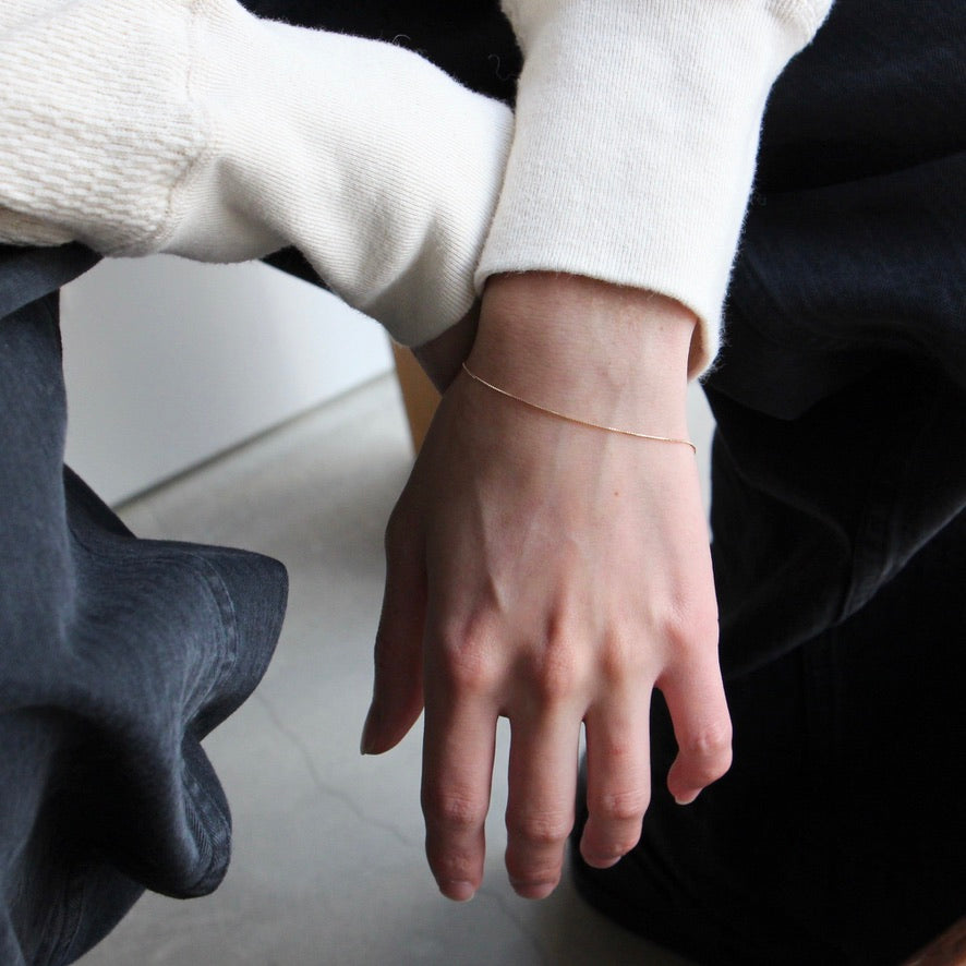 0.75mm幅の繊細なシルバーチェーンで作ったミニマルなブレスレット。