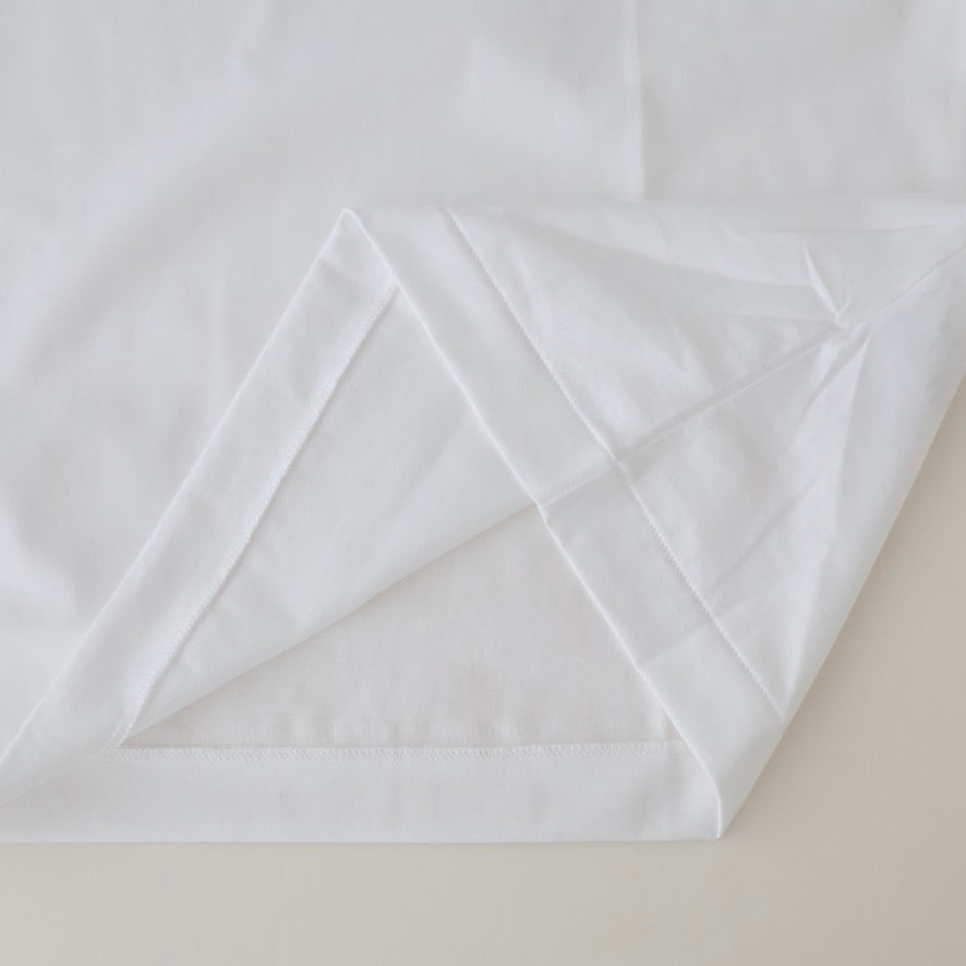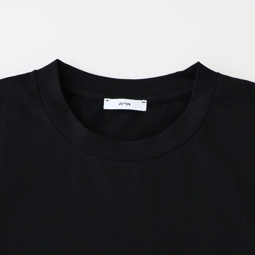 存在感のあるオーバーサイズが特徴のATON定番Tシャツ。ゆとりのあるシルエット、横幅に対し縦の比率が少し長く、少しモードな印象です。素材に落ち感があり、女性がオーバーサイスで着用しても様になる1着です。