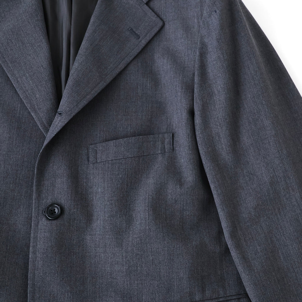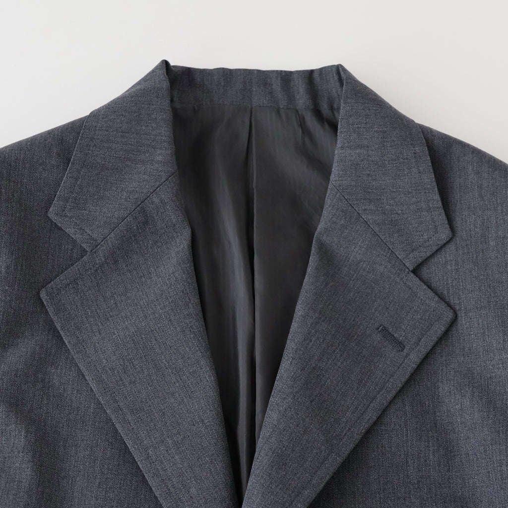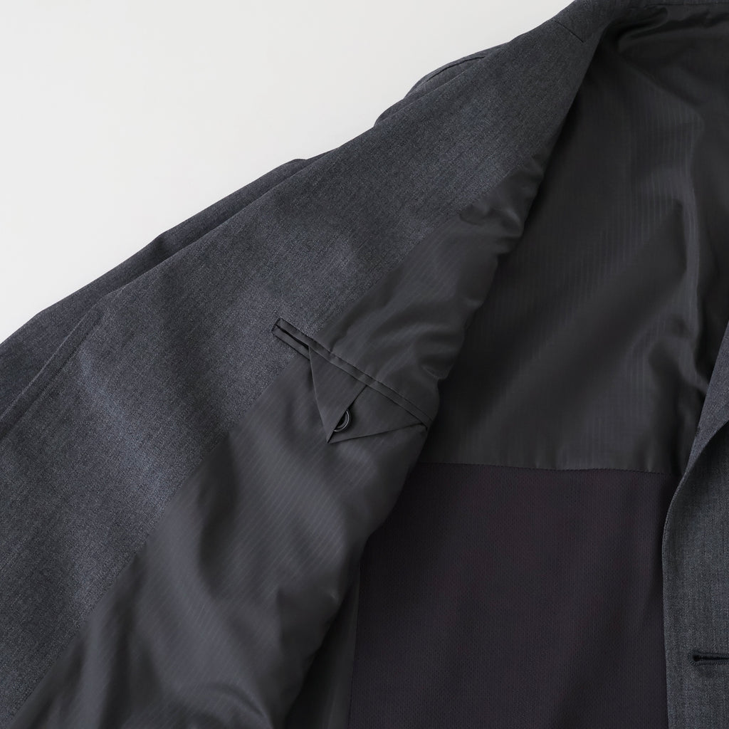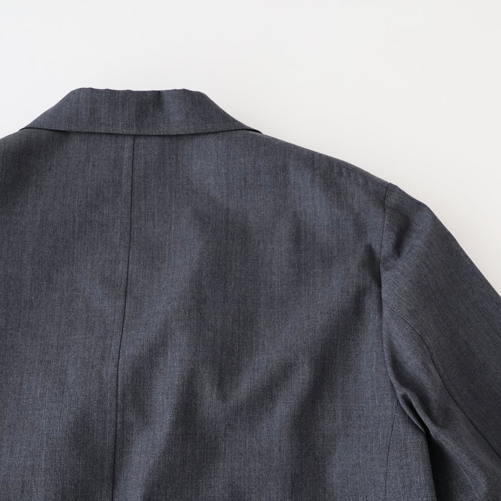 3つボタン段返りセンターフックベンツと60年代のスポーツコートをベースを70年代を象徴する特徴的なラベル、極端に低い胸ポケットや肩傾斜、さまざまな要素が組み合わせながら独自のバランスを作り上げました。裏地にはアウトドアスタイルを感じさせるミニスリップトップのフルライニング仕様、素材使い組み合わせのアレンジもこのアイテムの特徴です。