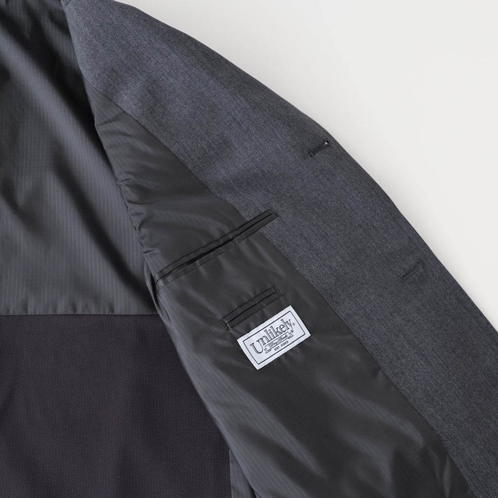 そしてライニングは背中、肘部分にポリエステルメッシュを切り替えて隠された特徴を持たせました。とにかく暑い日本の夏を出来る限り快適に過ごすための機能を加えております。隠れた部分にも配慮し、ネガティブ要素を改善させたUnlikelyの意欲作です。