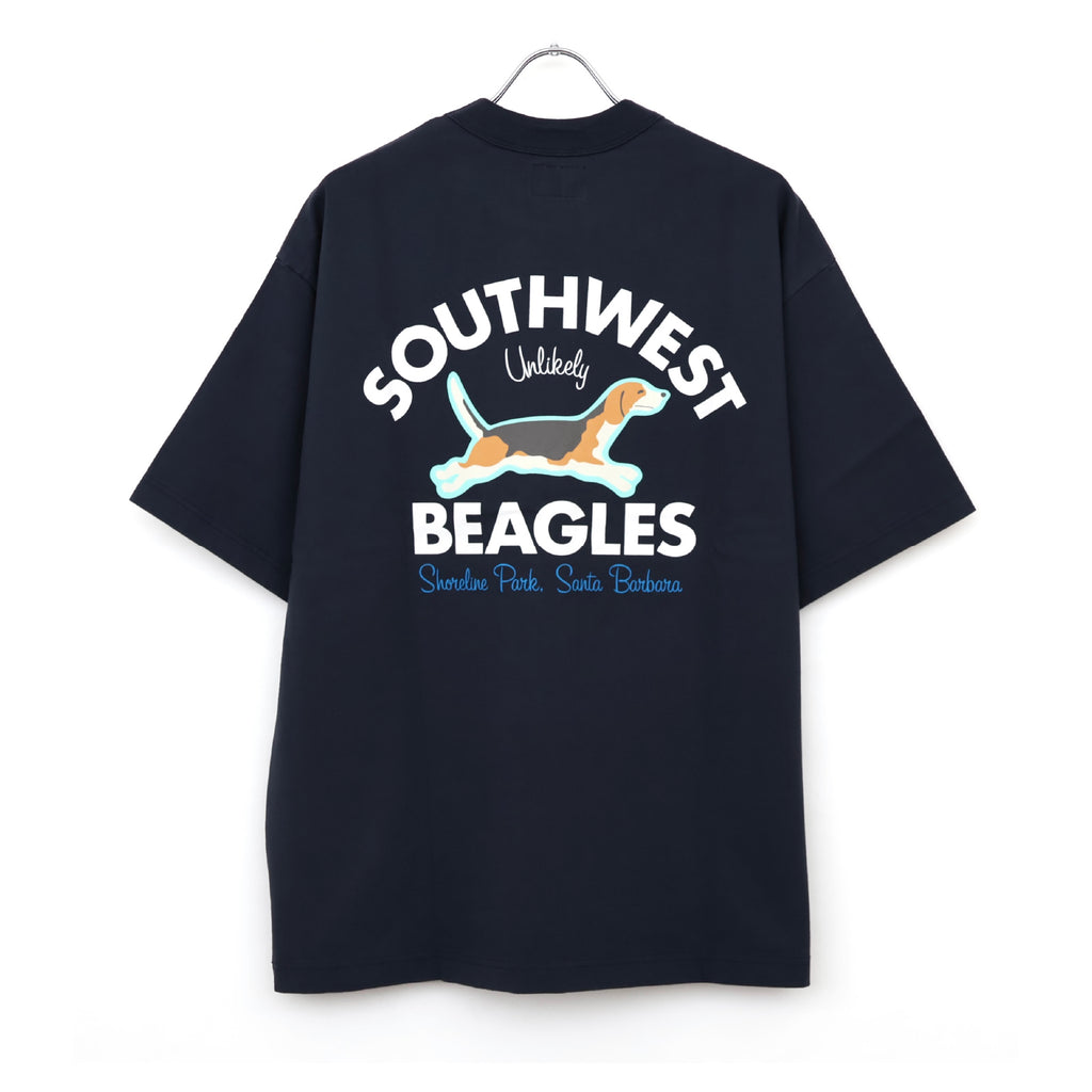 今回、架空の野球チーム”Southwest Unlikely Beagles”のトレーニングウエアとしてデザインしたクラシックなグラフィックをプリントをおります。通常より大きなプリントワークが特徴です。