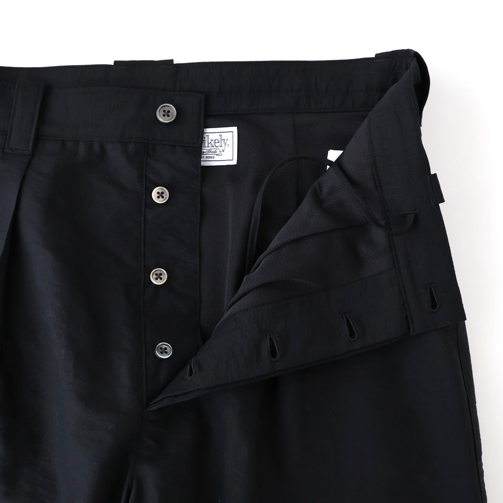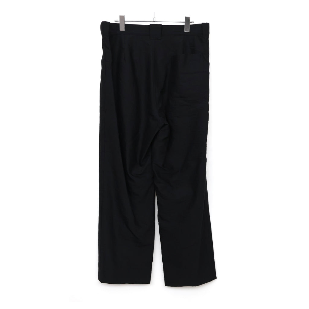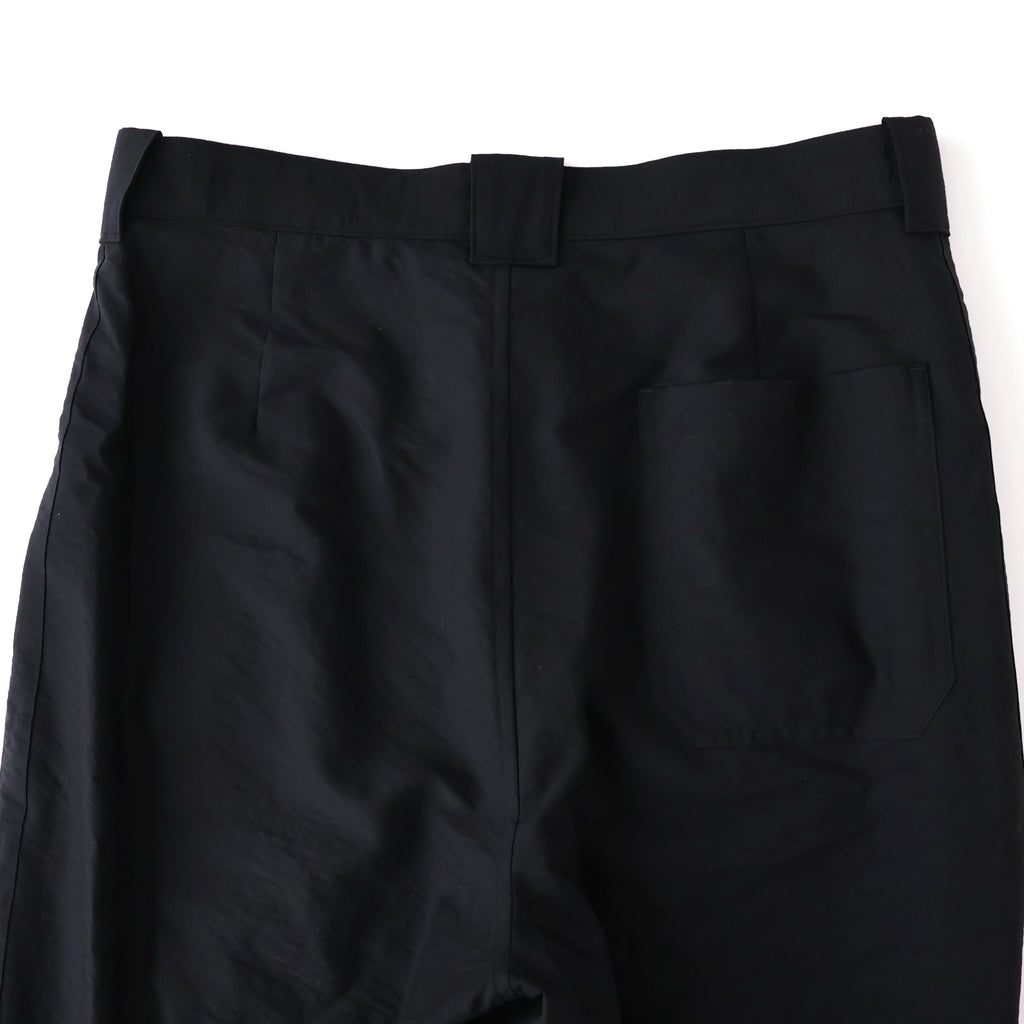 軽快に穿くことができるよう、ウエストにはドローコードを配し、ベルトをつけるも良し、そのまま紐で絞るも良しな、2WAY使用にアレンジいたしました。オリジナルのディテールでもある、1プリーツのフロントも特徴的。ヒップに余裕を持たせた着心地の良いバランスで作成いたしました。