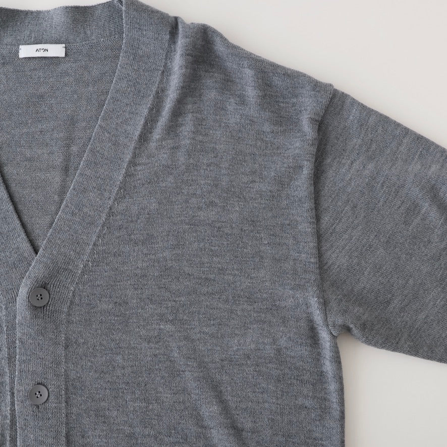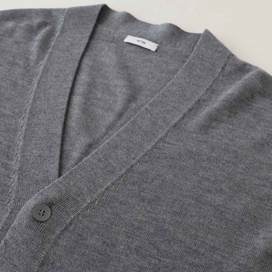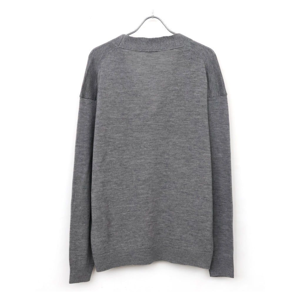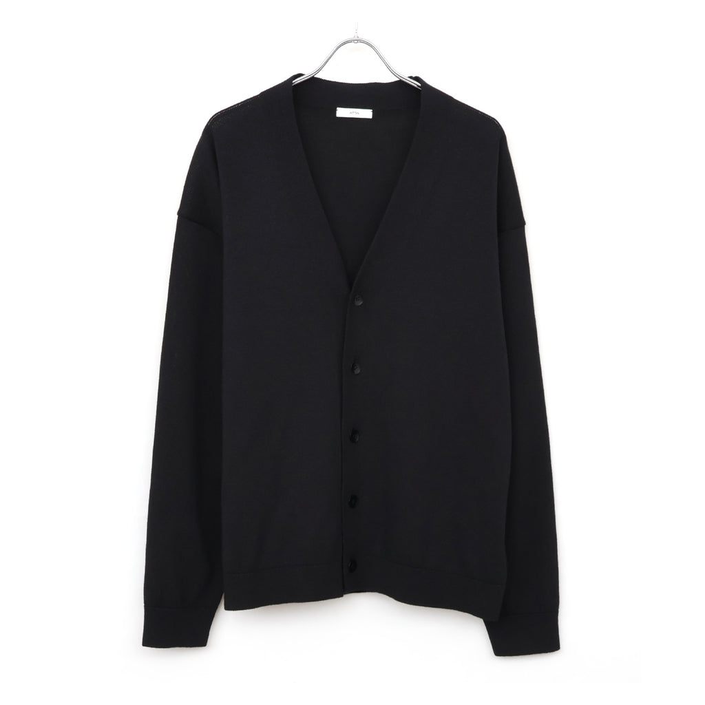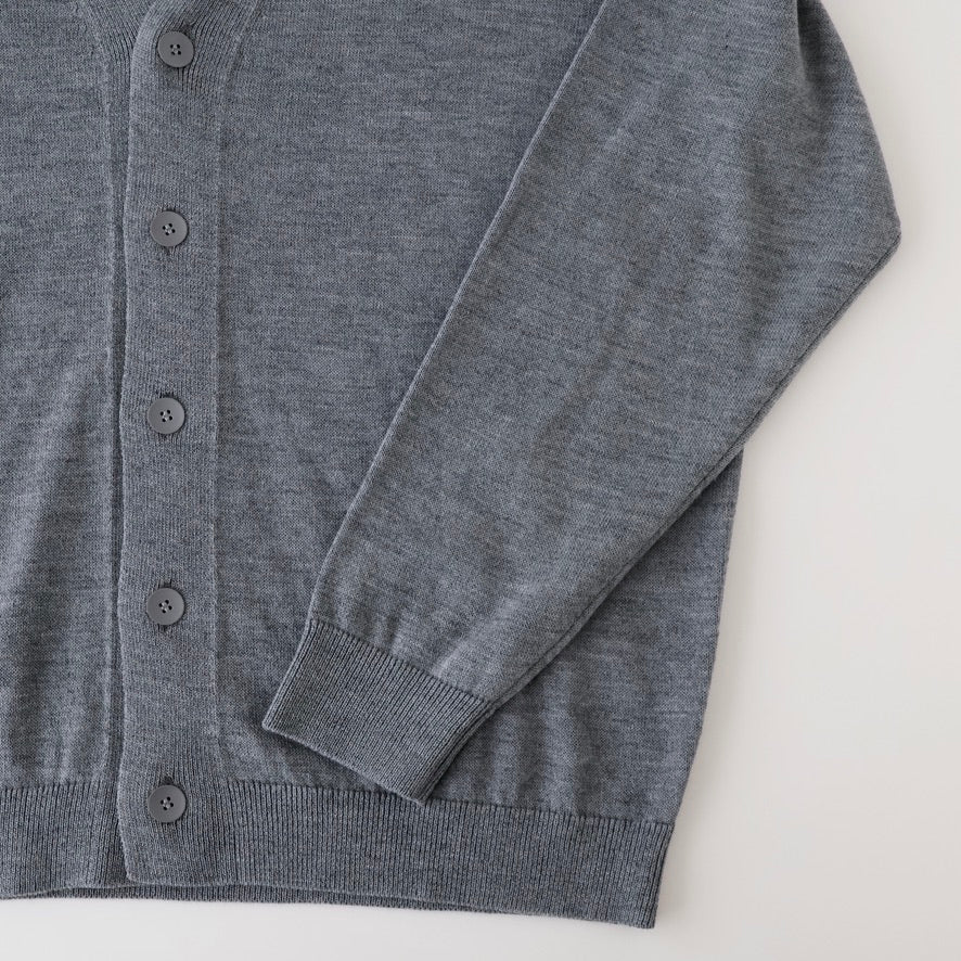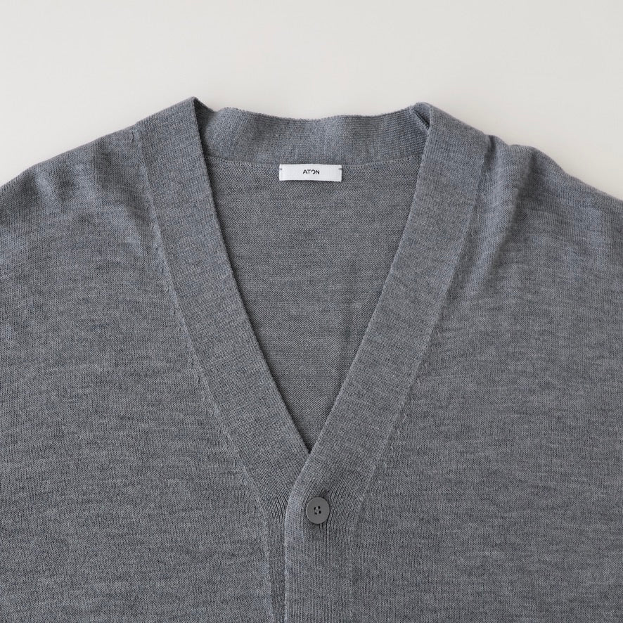 通常より太めの前立てと、オーバーサイズなシルエットが特徴的なカーディガンです。12ゲージを採用し、適正度目でサラッとした着心地に仕上げました。裾のリブが締まりすぎておらず、Tシャツの上からサラッと着用するだけでさまになります。優れた機能性も持ち合わせているので、真冬以外の3シーズン着用可能な1着です。