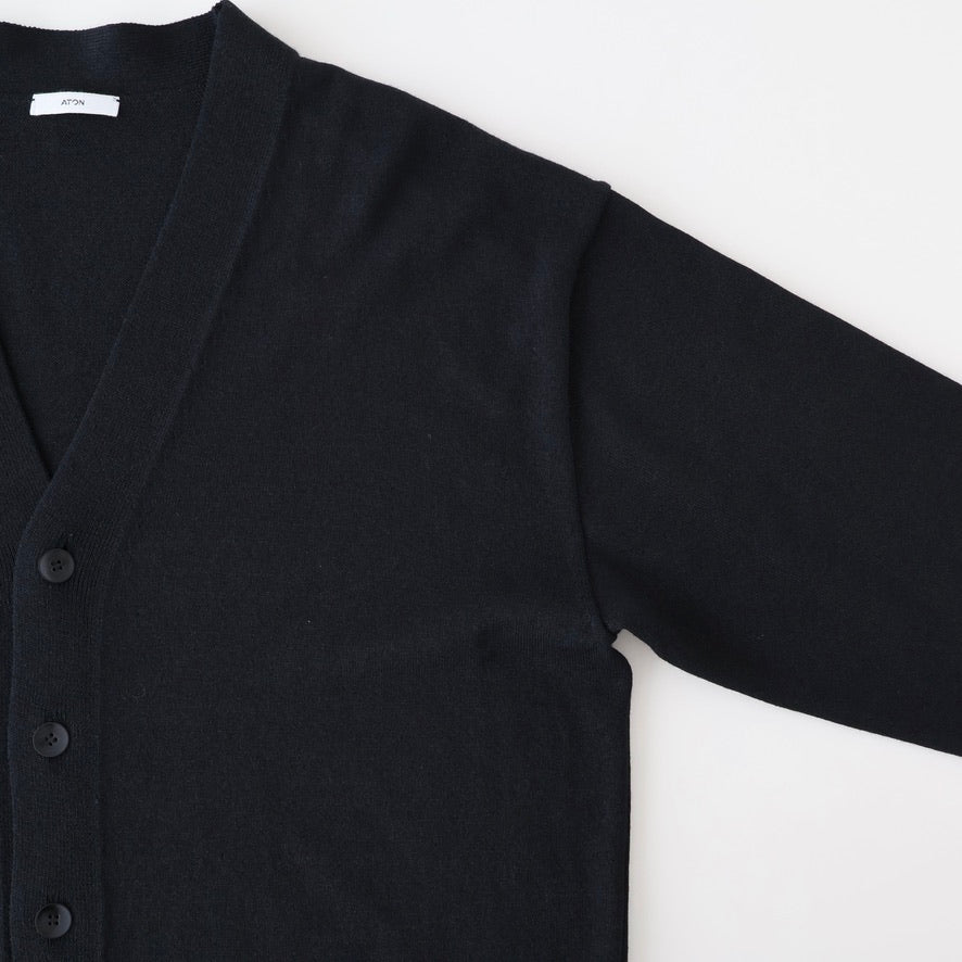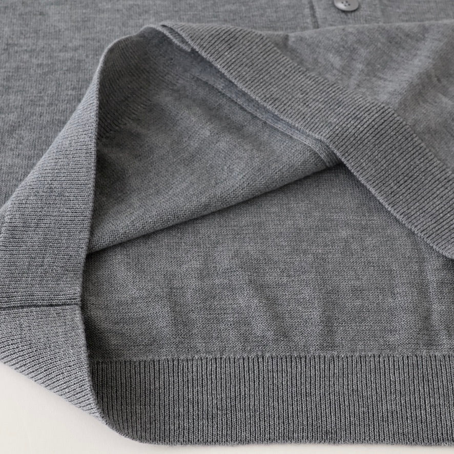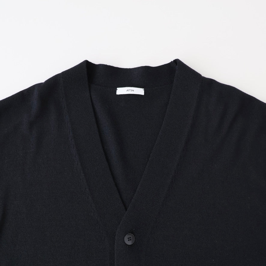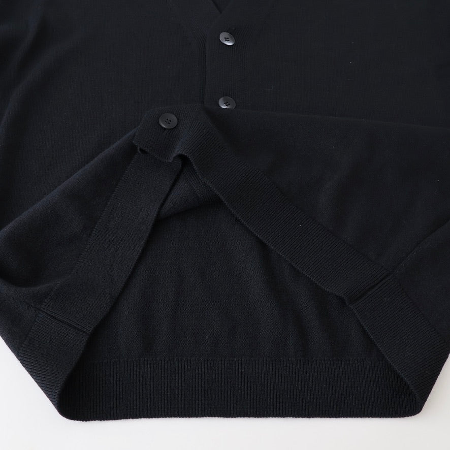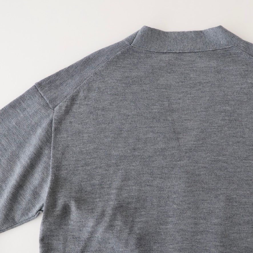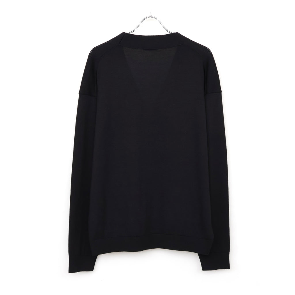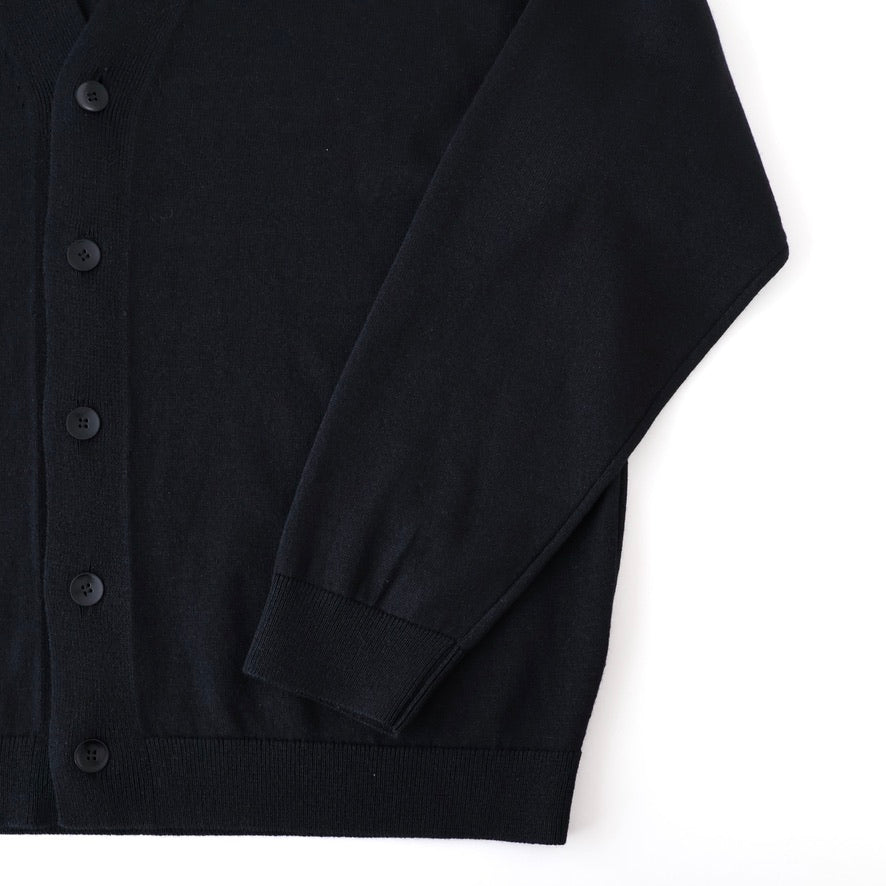 通常より太めの前立てと、オーバーサイズなシルエットが特徴的なカーディガンです。12ゲージを採用し、適正度目でサラッとした着心地に仕上げました。裾のリブが締まりすぎておらず、Tシャツの上からサラッと着用するだけでさまになります。優れた機能性も持ち合わせているので、真冬以外の3シーズン着用可能な1着です。