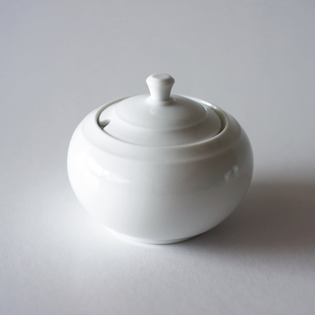 長崎県波佐見町、白岳窯で一つ一つ丁寧に製造されました。線の美しいデザイン、丸みのあるフォルムはどんなカトラリーやテーブルウェアと並んでも邪魔をしません。サイズは2種類。平たい方には七味、丸い方には山椒を入れる等、大きさ別に色々な薬味を分けていれるのも楽しい。また、幾つか並べる際は折敷とセットがおすすめ。テーブルがすっきりと纏まり、アクセントにもなります。